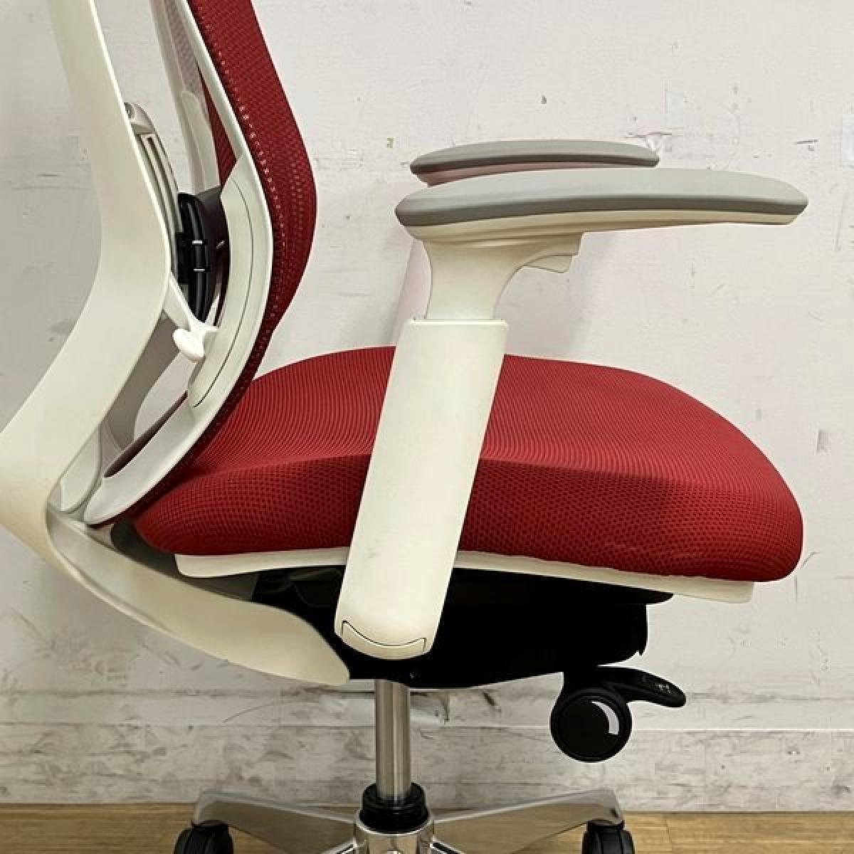 【大手町・神田サテライトCP】【三次元曲面が快適にフィット!!前傾チルト機能付の大人気メッシュチェア!】■オカムラ(okamura)製 シルフィー(Sylphy) 肘付き ハイバック ■メッシュバック ■可動肘 レッド/ フレーム色:ホワイト
