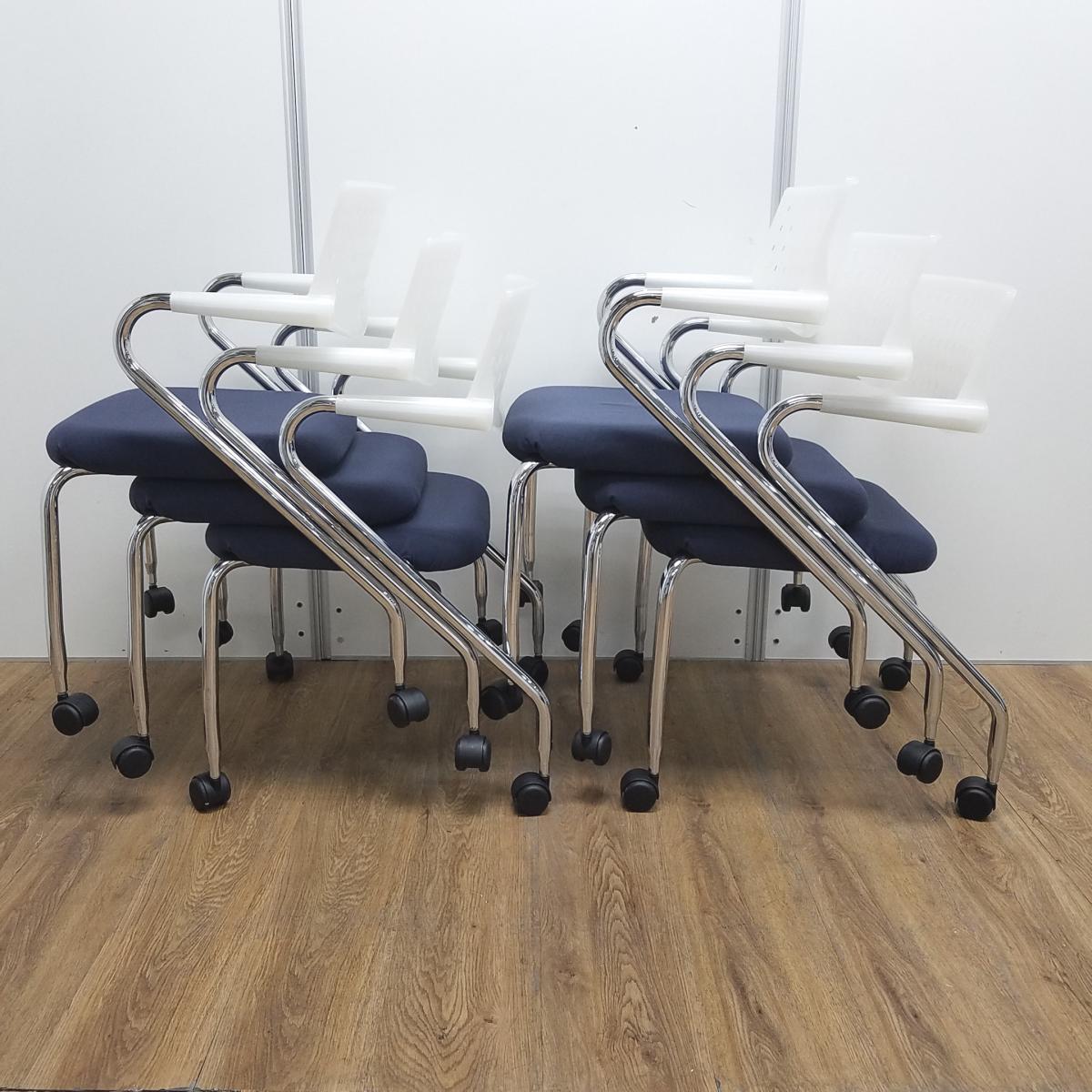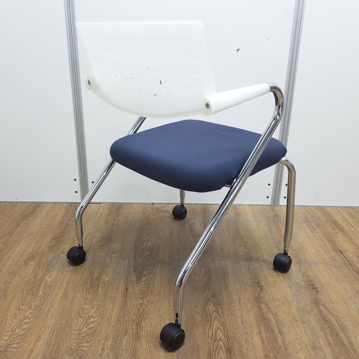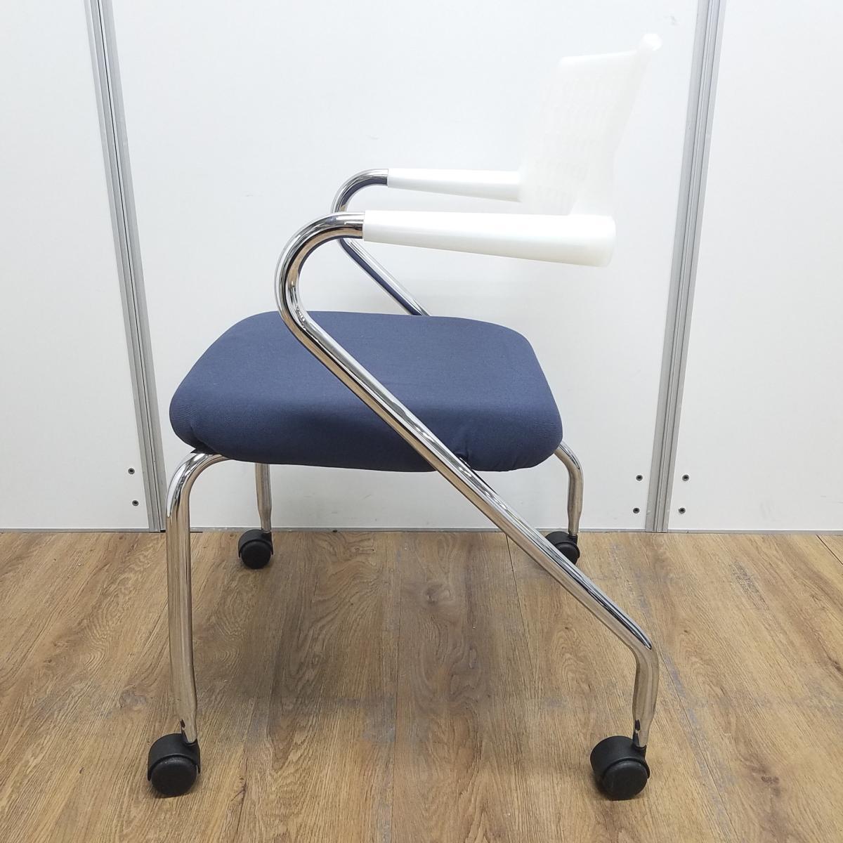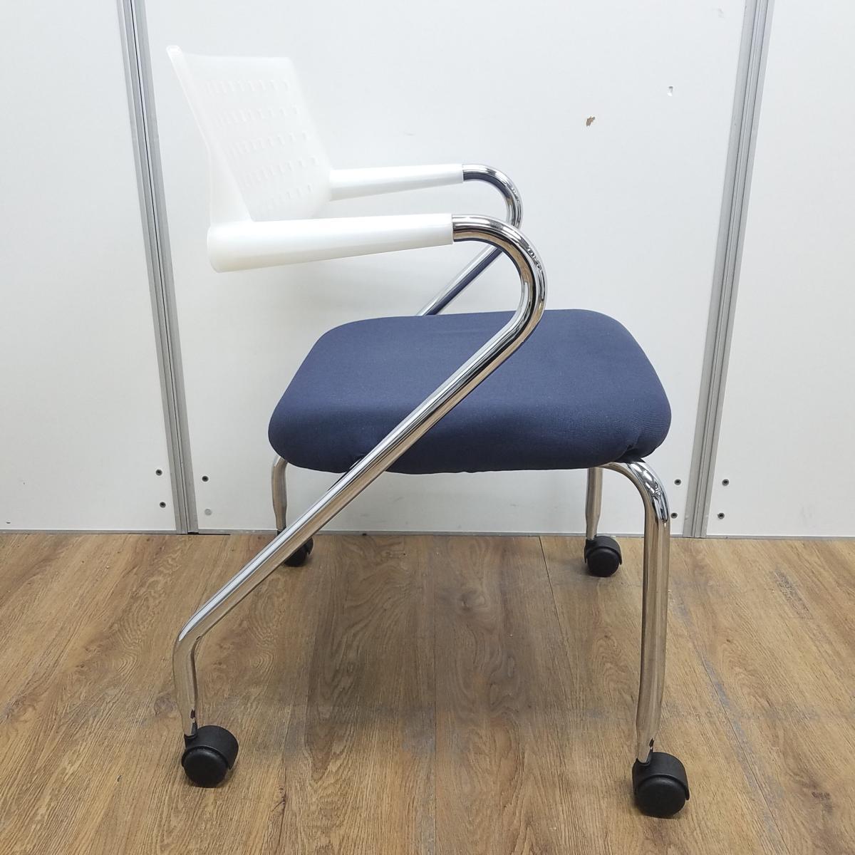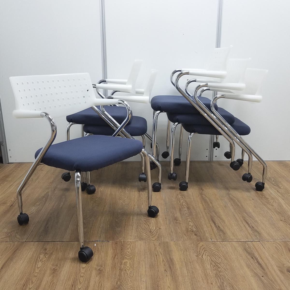 【6脚セット!!】ヴィトラ製 ビザロール ブルーxホワイト 背面樹脂メッシュ 固定肘 キャスター付 緩やかな曲線が疲れにくさを実現! 人気の高い高品質デザインチェア! ミーティングチェア!!- 京都東寺店