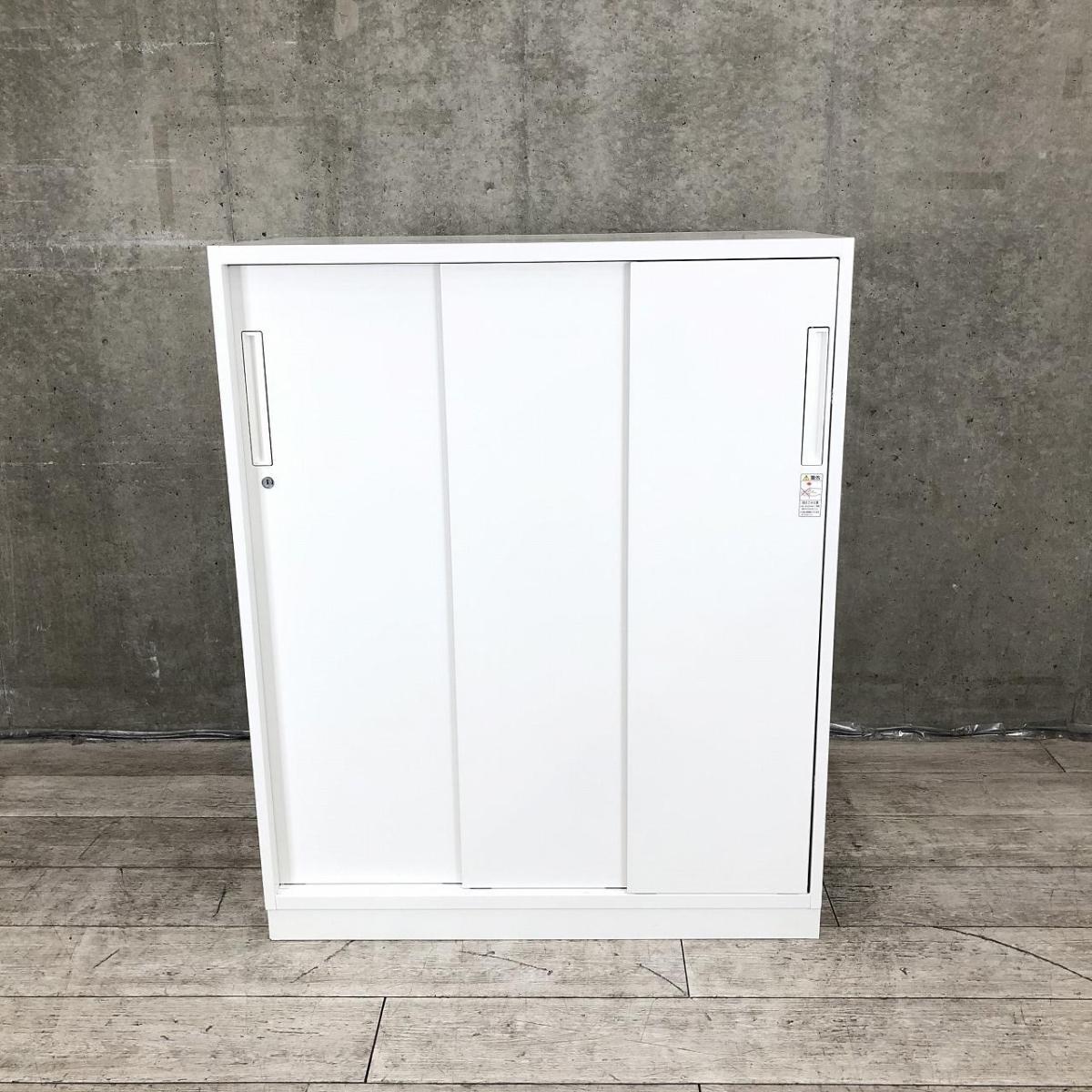 3枚引き戸書庫 コクヨ エディア 鍵付き(シリンダー錠) 天板付き 清潔感のあるホワイトキャビネット 導線を邪魔しないスライド式の扉