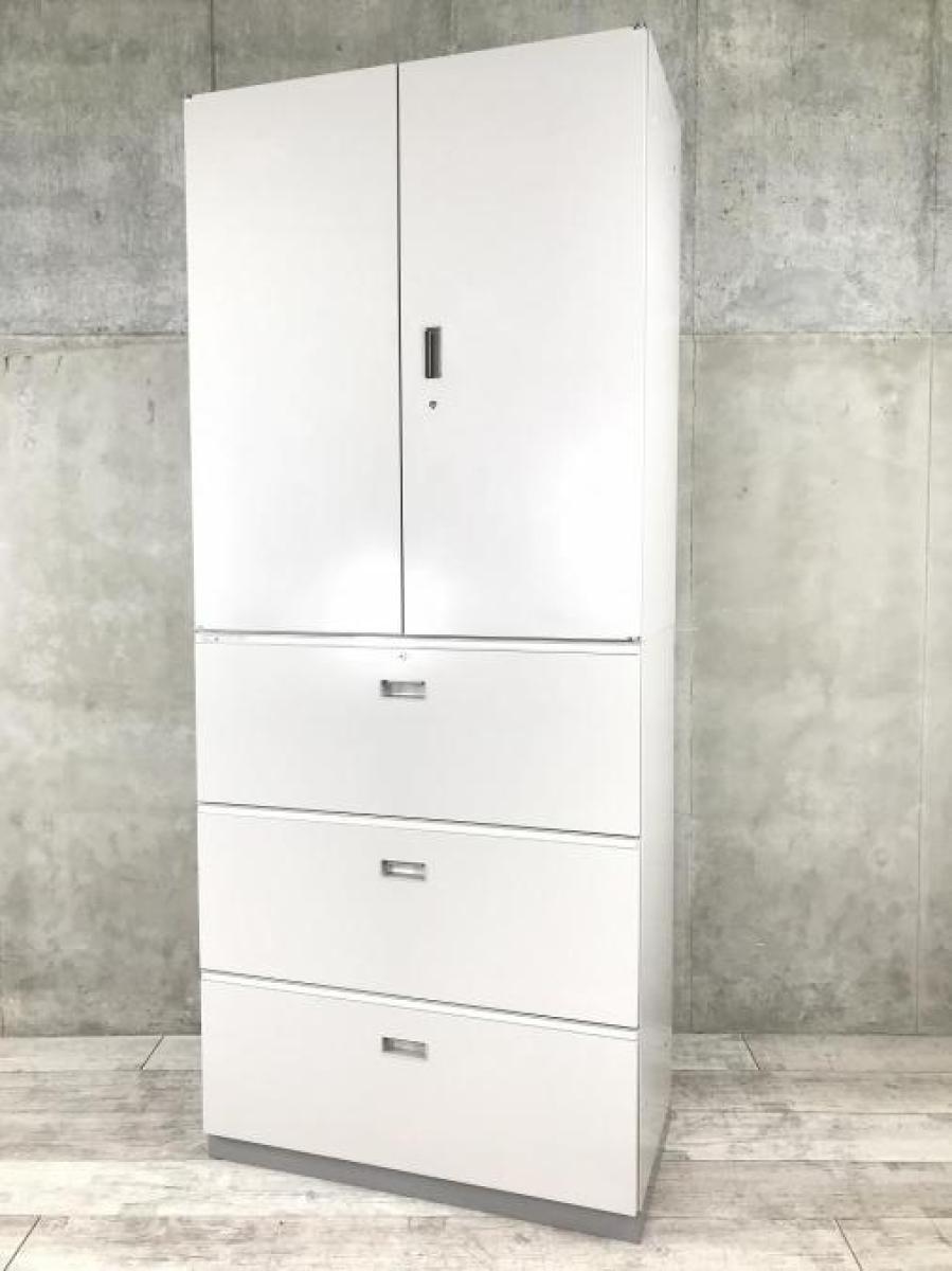 【倉庫在庫品】【これ1台で書類整理の問題が解決!上下で6段分の大容量収納!】■イトーキ (ITOKI)製 シンライン ハイキャビネット 両開き+3段ラテラル 書庫セット ■グレー ■シリンダー錠