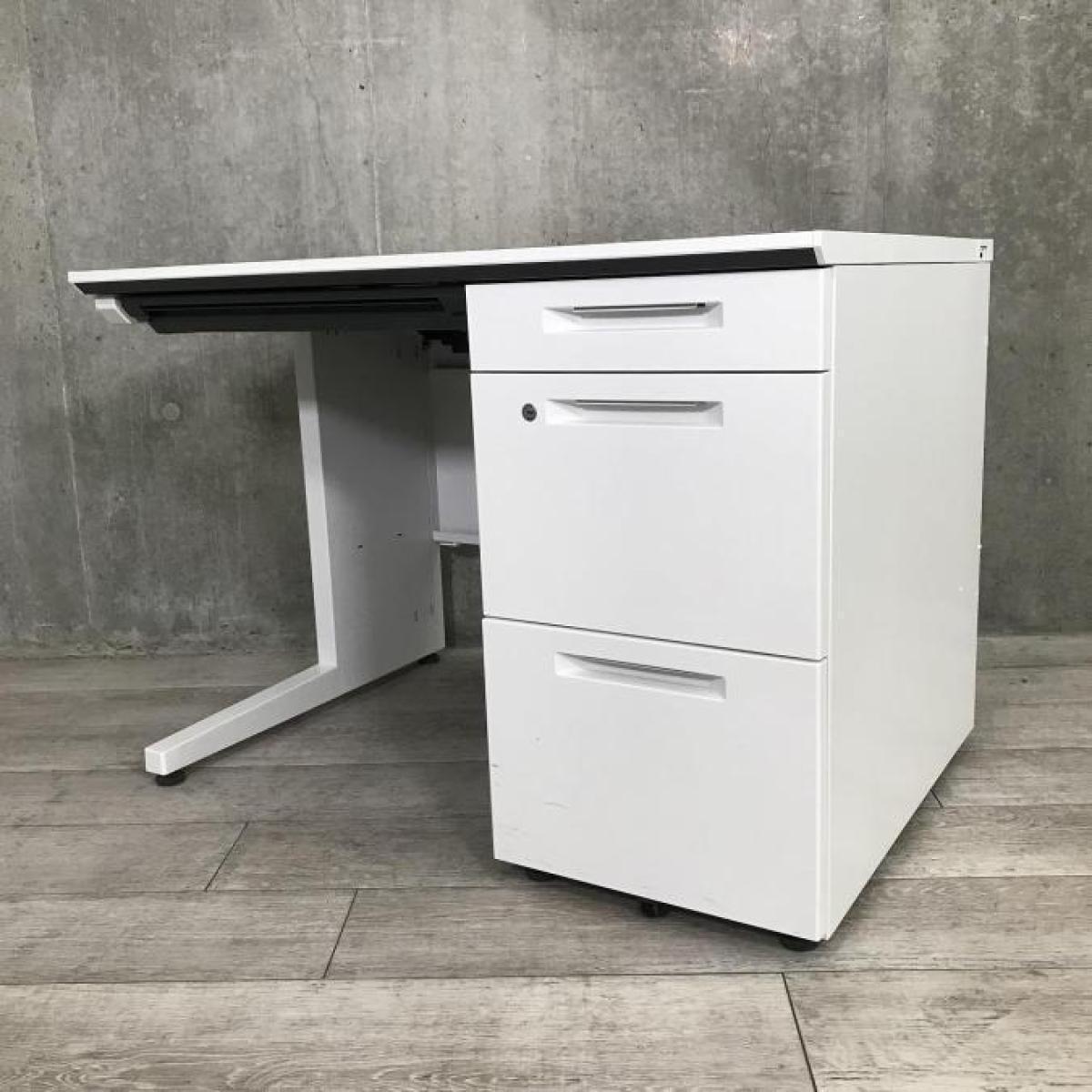 【省スペースのオフィスに最適!コンパクトサイズの片袖机!配線カバーも充実の高品質デスク!】■コクヨ(KOKUYO)製 アイエス(iS)シリーズ 片袖机 W1000×D700㎜ ■シリンダー錠 ■ホワイト