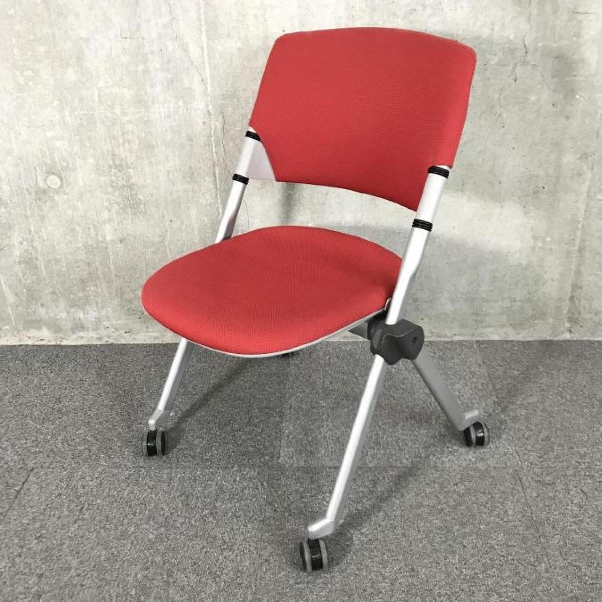 【在庫入替セール】【3脚限定】【会議室におすすめ!折り畳んで横に重ねて収納可能!】■オカムラ(okamura)製 リータ(LITA) ミーティングチェア ネスティングチェア 会議用 ■キャスター付 ■レッド【移動も楽々!】【T9】在庫がある店舗一覧