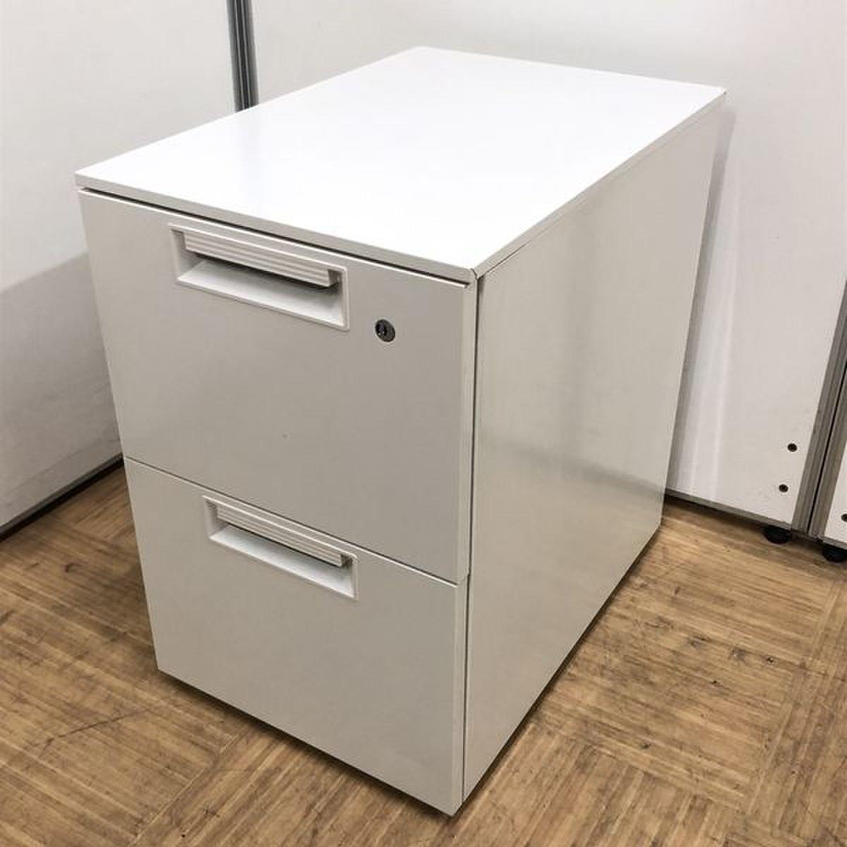 【手狭なオフィスでも使いやすい奥行スリムタイプが入荷いたしました!】■プラス(PLUS)製 リード(LEED)シリーズ 2段ワゴン フリアド用 W395×D420×H630mm ■シリンダー錠 ■ホワイト ■サイドキャビネット