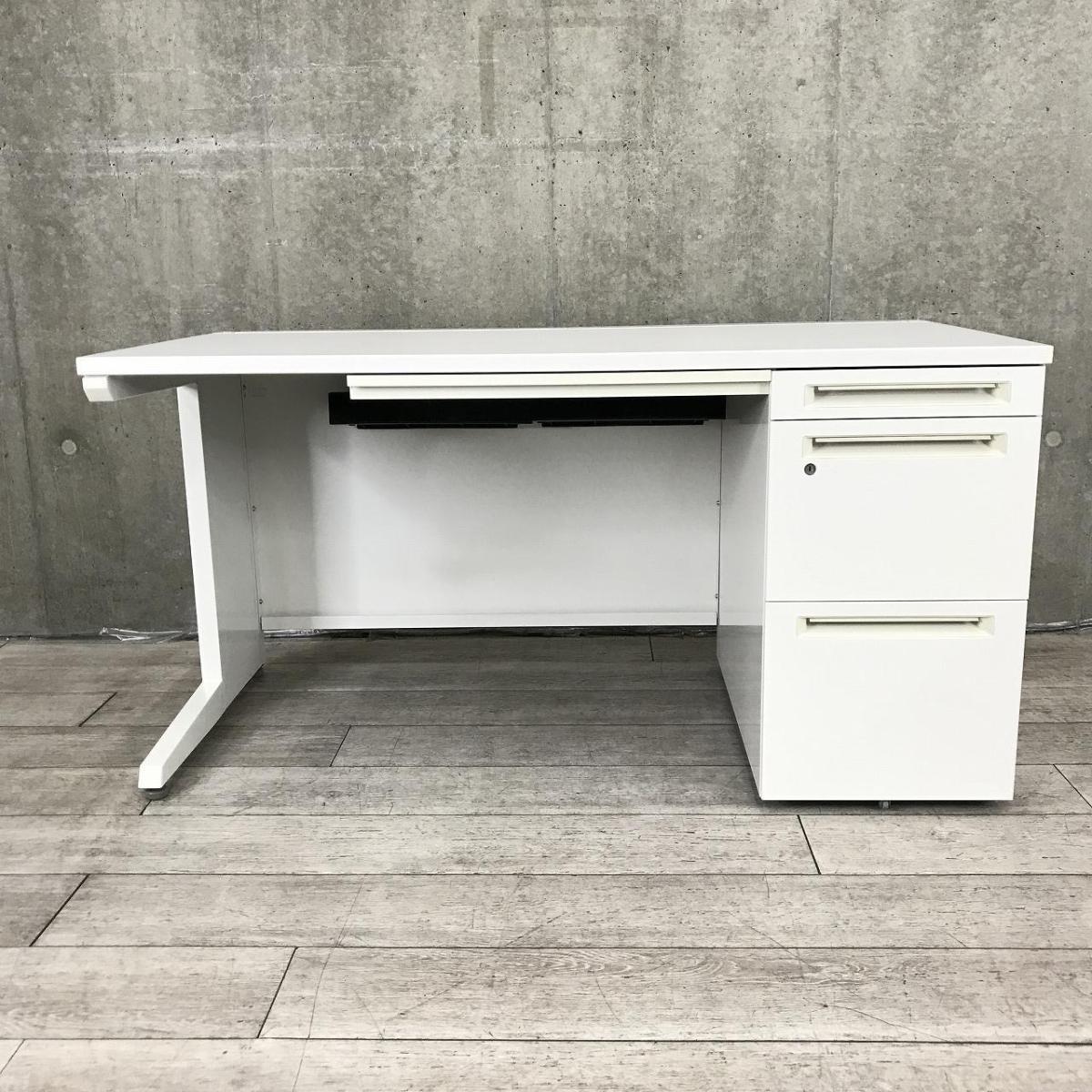 【セットでお買い得!横幅1400の平机と3段ワゴン!疑似片袖机】 オカムラ アドバンス ホワイト 引き出し付き ネオホワイト【収納が欲しいかたにはオススメ】