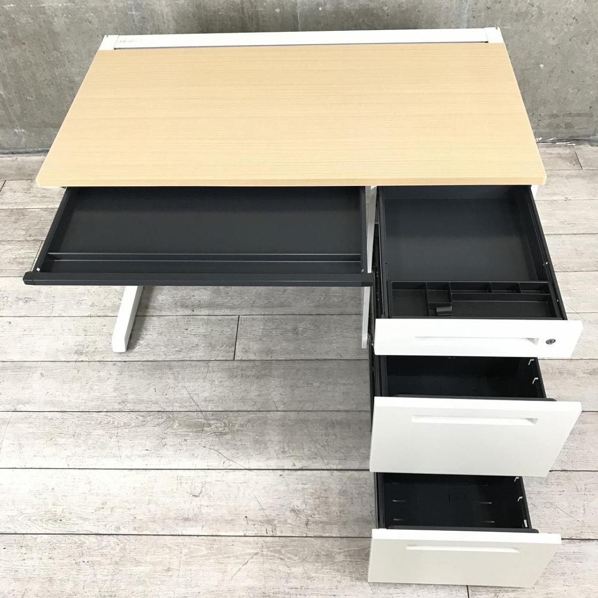【在庫入替セール】【定番サイズの幅1200㎜!人気のナチュラル調天板の片袖机!】■イトーキ(ITOKI)製 CZRシリーズ 片袖机 ■ホワイト / 天板:ナチュラル木目調 ■シリンダー錠【収納も充実で使いやすい!】【K10】- 神戸・三宮店