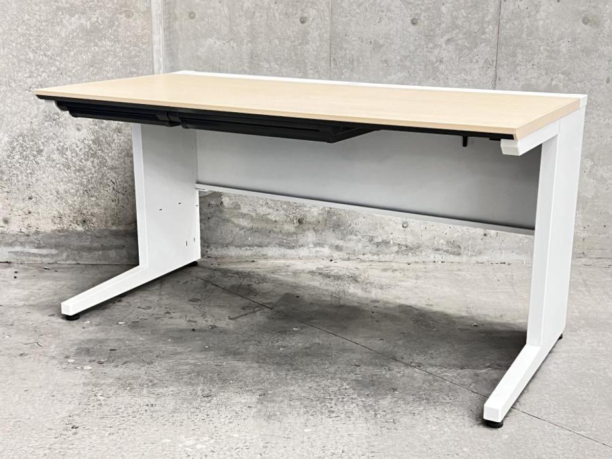 【ワークスペース広々!足元ゆったりの幅1400㎜タイプ!】■コクヨ(KOKUYO)製 isシリーズ(アイエス) 平机 幅1400㎜ 引き出し無し ■天板:木目ナチュラル 本体:ホワイト オフィスバスターズ東大阪店