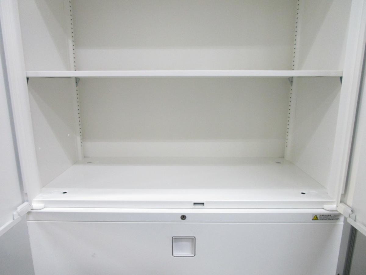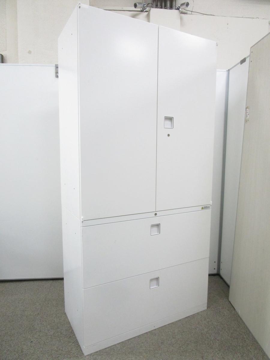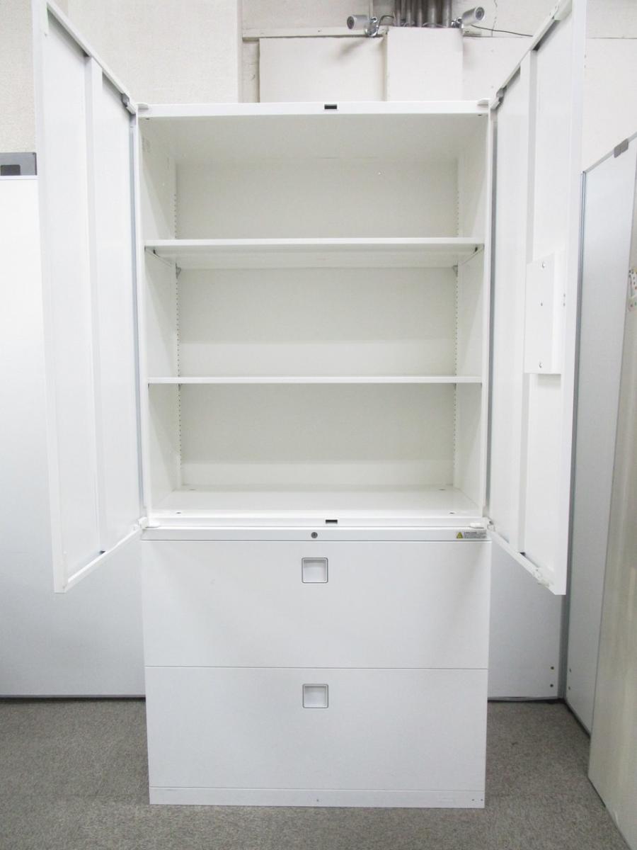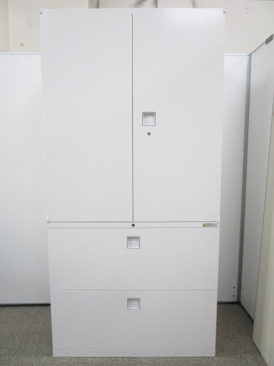 スライド式の扉+引き出しタイプの便利な書庫セットが入荷!使い勝手抜群のハイキャビネットが入荷! ■オカムラ/レクトライン/ホワイト 2枚引き戸+3段ラテラルキャビネット