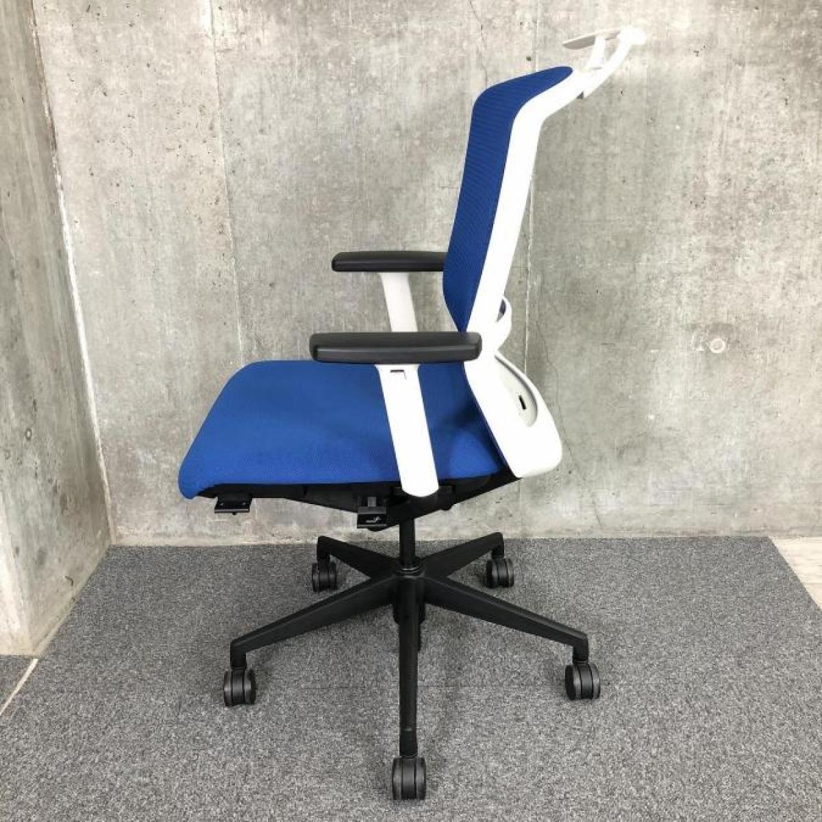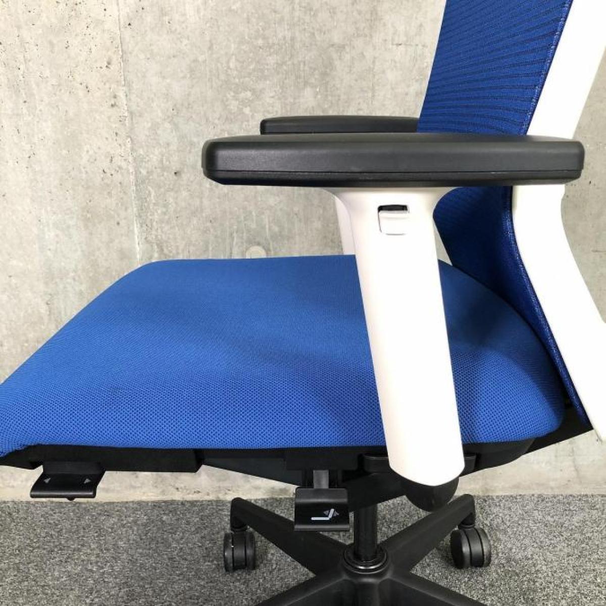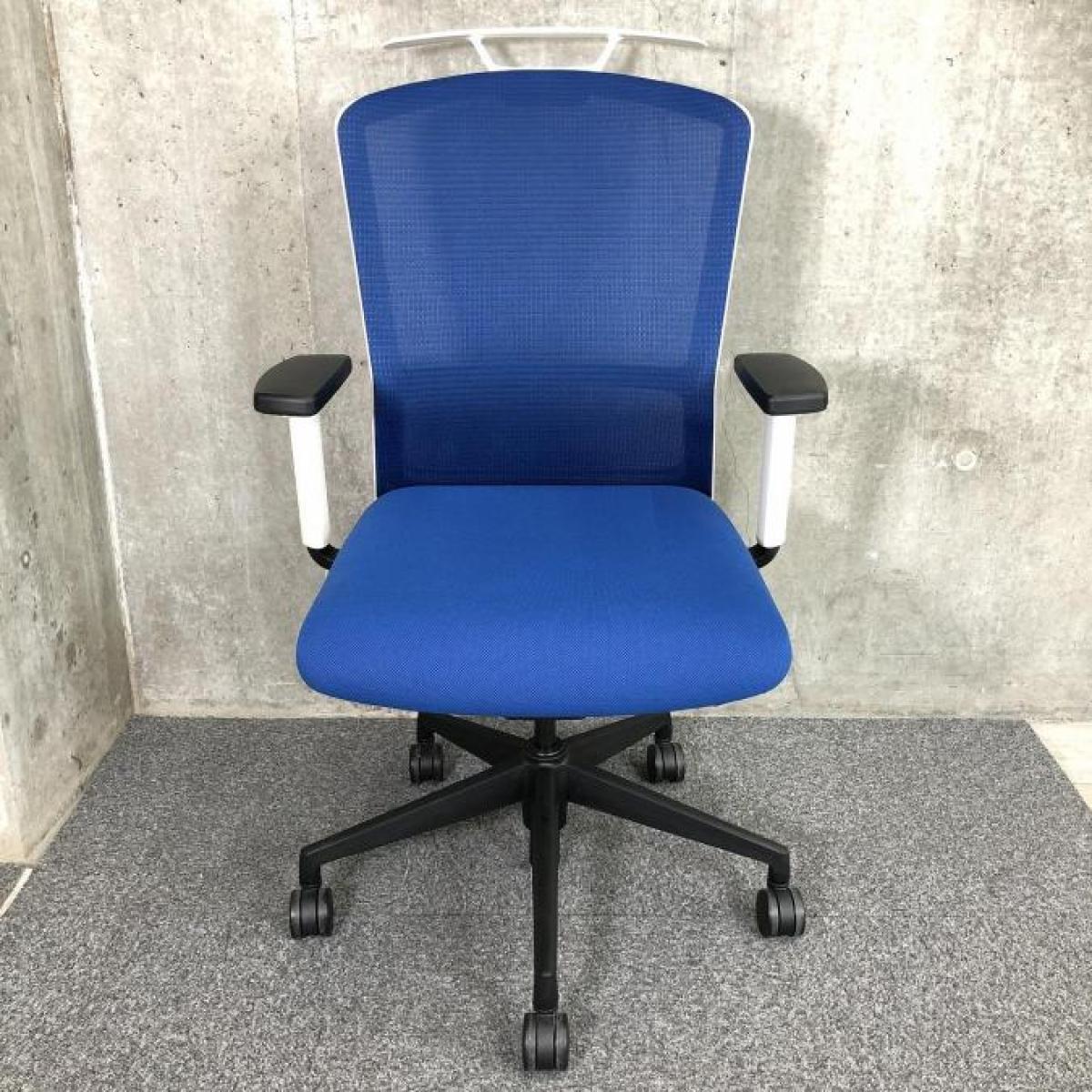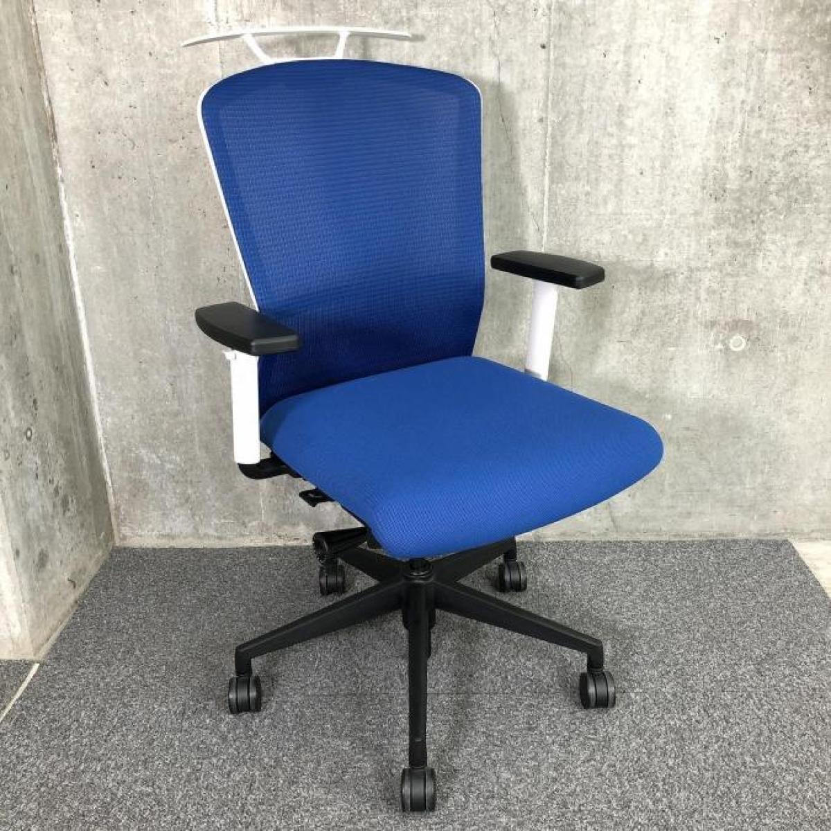 【ワンランク上の座り心地!人間工学に基づいた快適なオフィスチェア】■ウチダ(UCHIDA)製 エルフィ (Elfie)チェア ハイバック 肘付き 背面メッシュ ■可動肘/ハンガー付 ■マリンブルー×ホワイトシェル オフィスバスターズ 東大阪店- 東大阪店