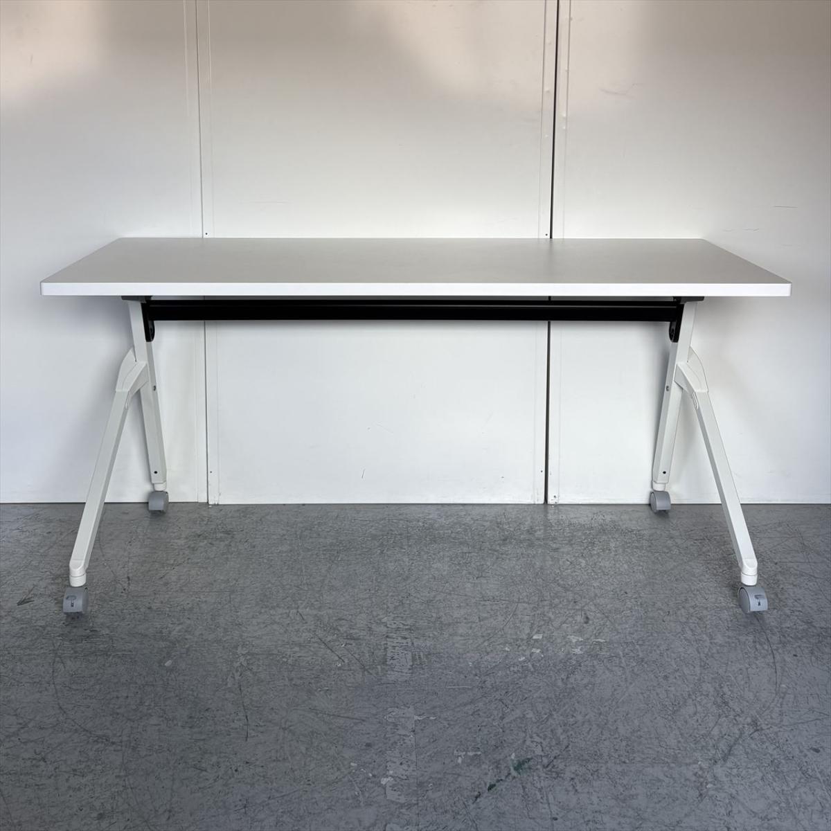 【10台入荷】【倉庫在庫品】【天板跳ね上げ式・キャスター付きのため収納にも便利!定番スタックテーブル!】■オカムラ(okamura) フラプター(FLAPTOR) サイドスタックテーブル サイドフォールドテーブル ■W1500×D600㎜ ■ホワイト ■幕板なし オフィスバスターズ 東大阪店- 東大阪店