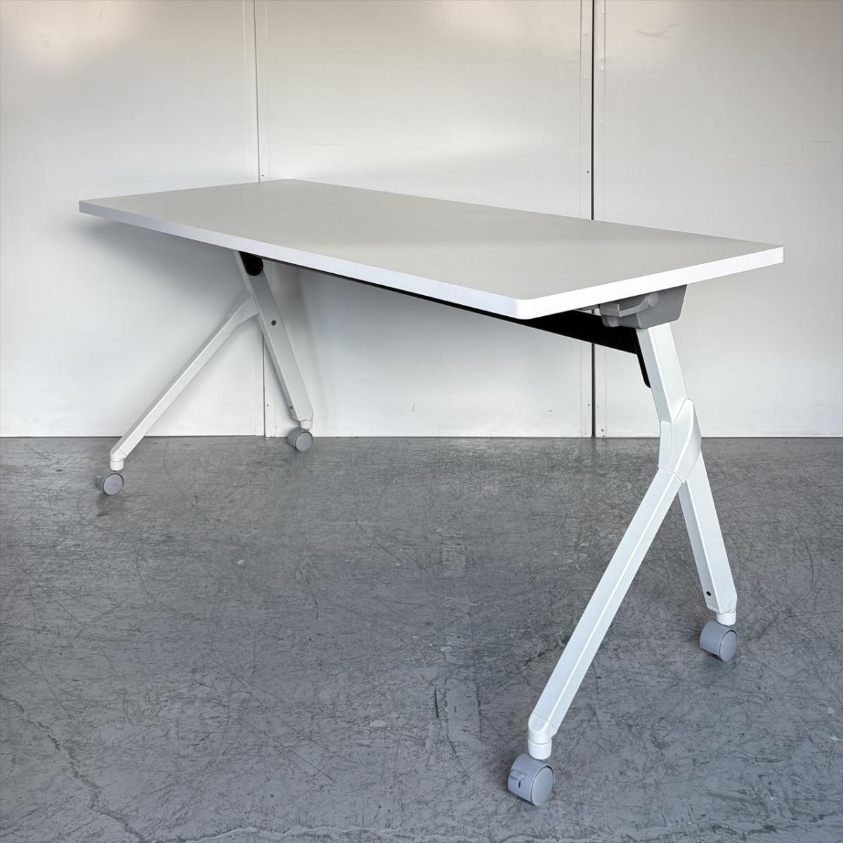 【在庫入替セール品】人気のスタックテーブル オカムラ フラプター ホワイト 幕板付き 折り畳める おすすめ!