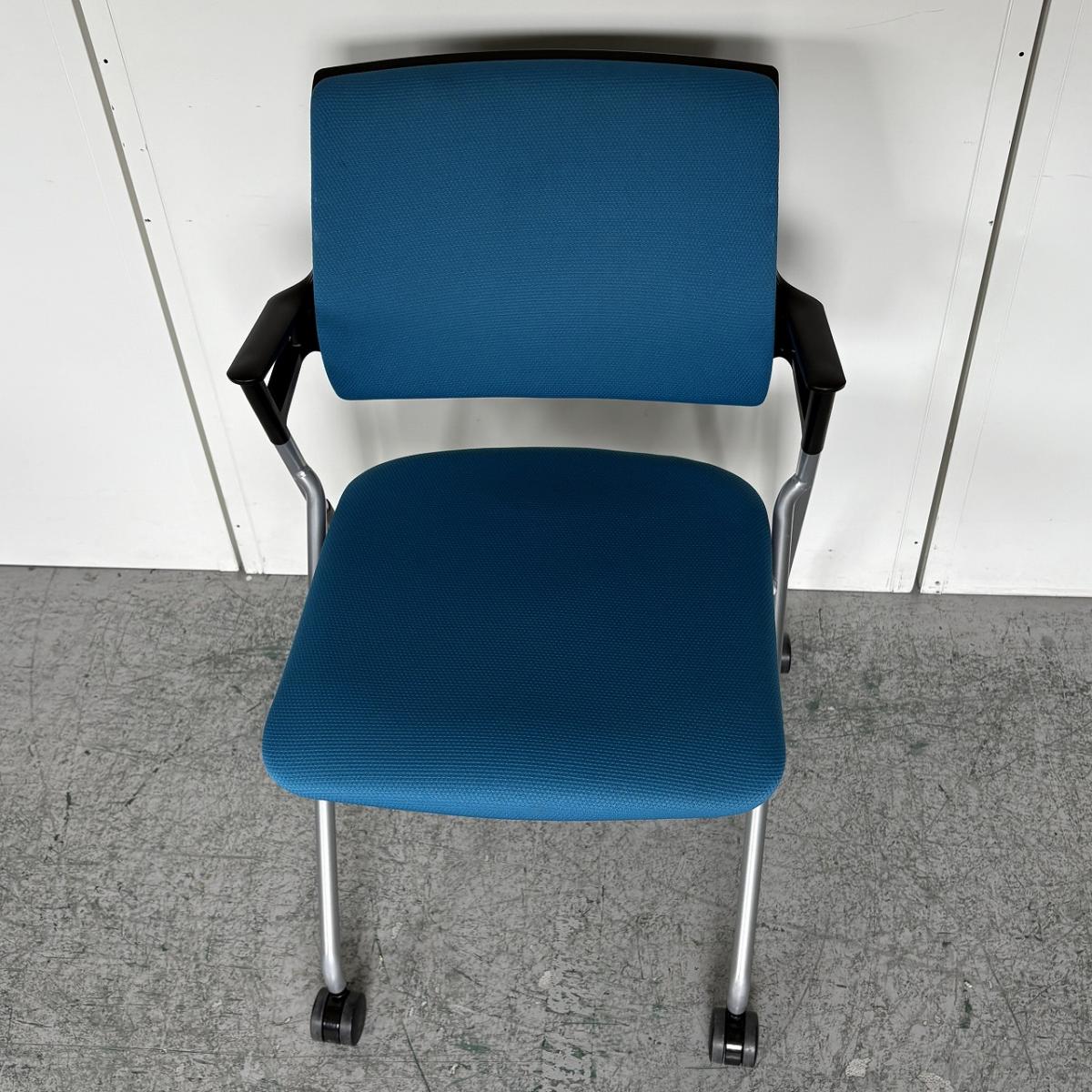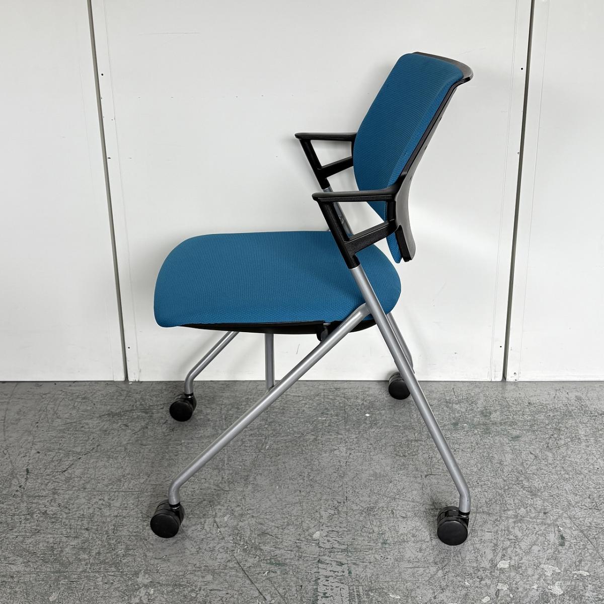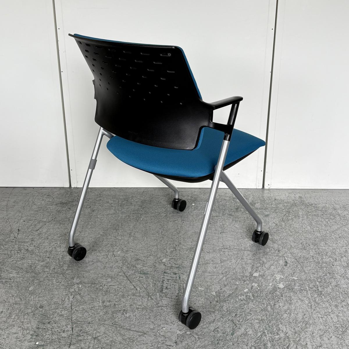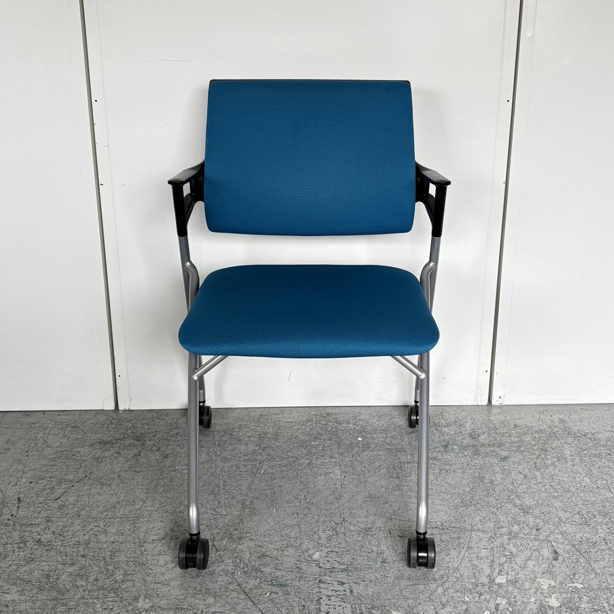 【定価約5万円】【使わない時は重ねて収納!肘付きで長時間の会議も安心の座り心地】■コクヨ(KOKUYO)製 ピエガシリーズ ネスティングチェア ミーティングチェア ■固定肘/キャスター付 ■背クッションタイプ ■ブルー×ブラックシェル- なんば日本橋店