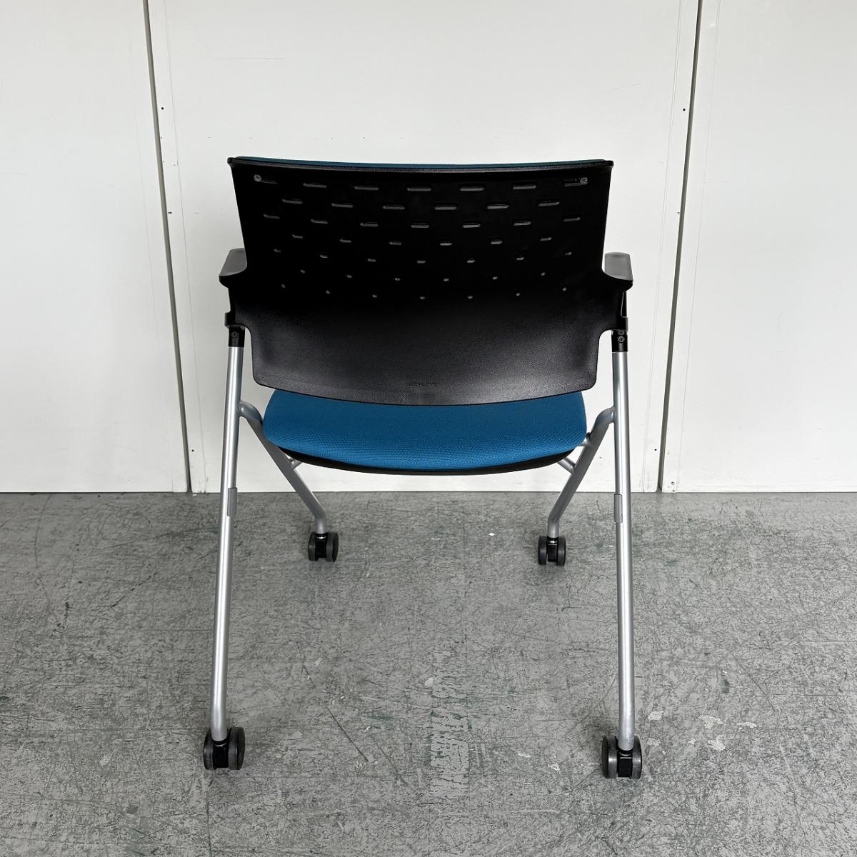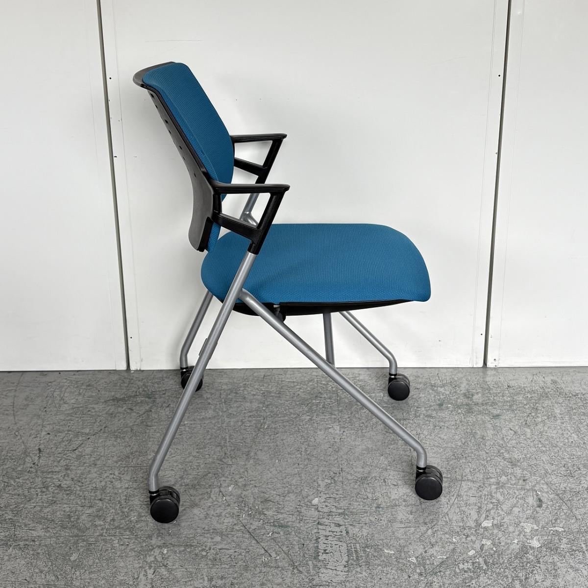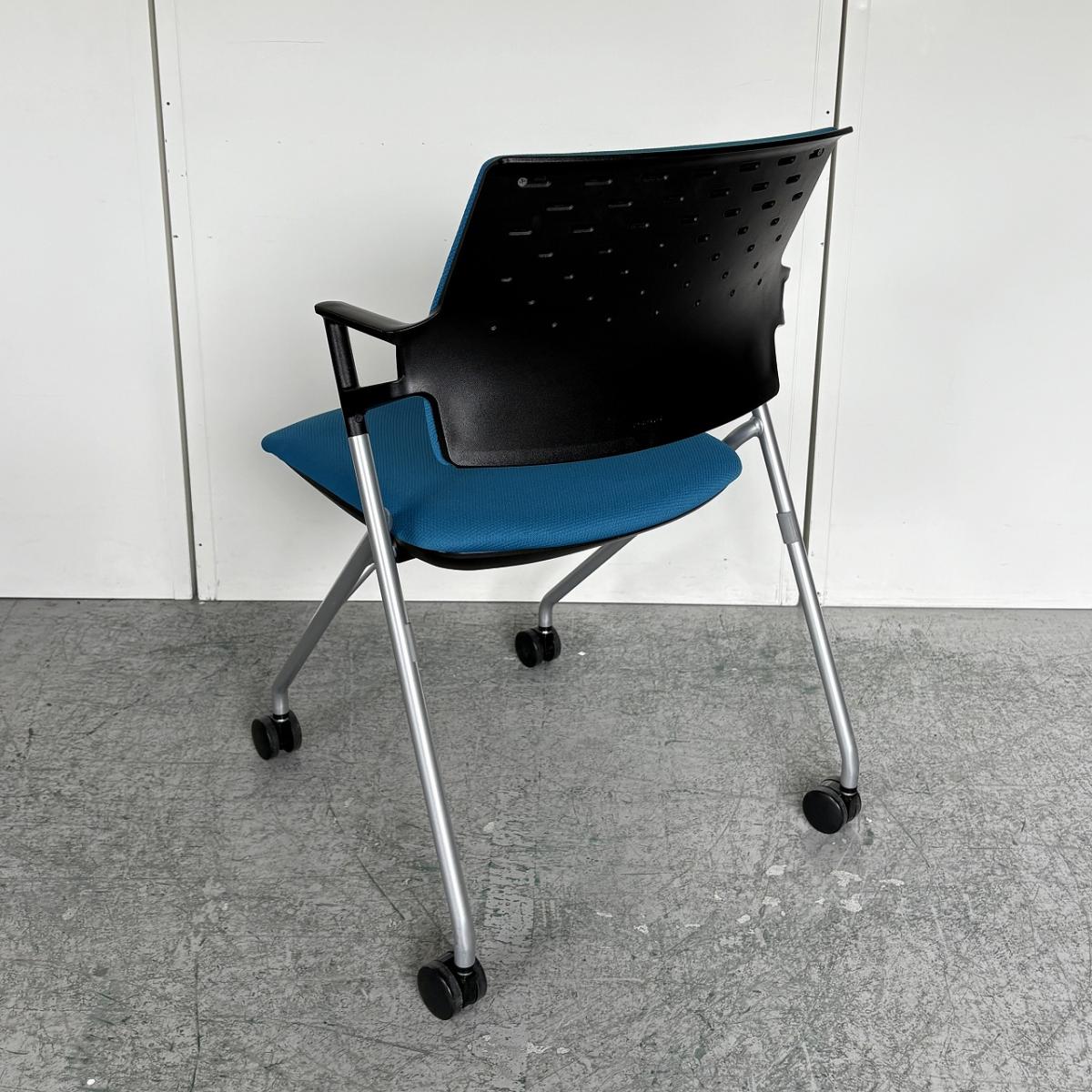 【定価約5万円】【使わない時は重ねて収納!肘付きで長時間の会議も安心の座り心地】■コクヨ(KOKUYO)製 ピエガシリーズ ネスティングチェア ミーティングチェア ■固定肘/キャスター付 ■背クッションタイプ ■ブルー×ブラックシェル- なんば日本橋店