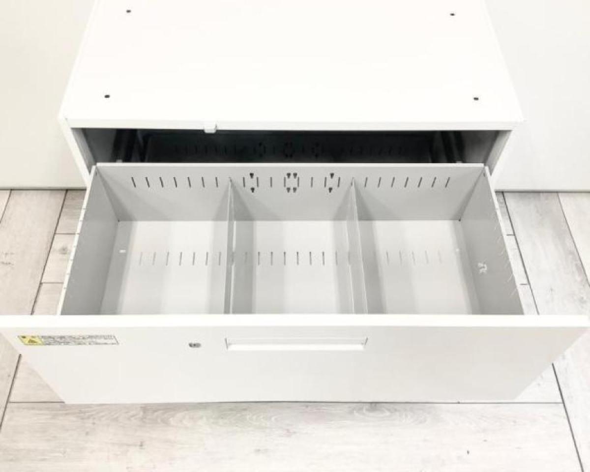 幅900×奥行450㎜なので定番タイプの引き出し書庫と同じくA4ファイル収納も得意です!