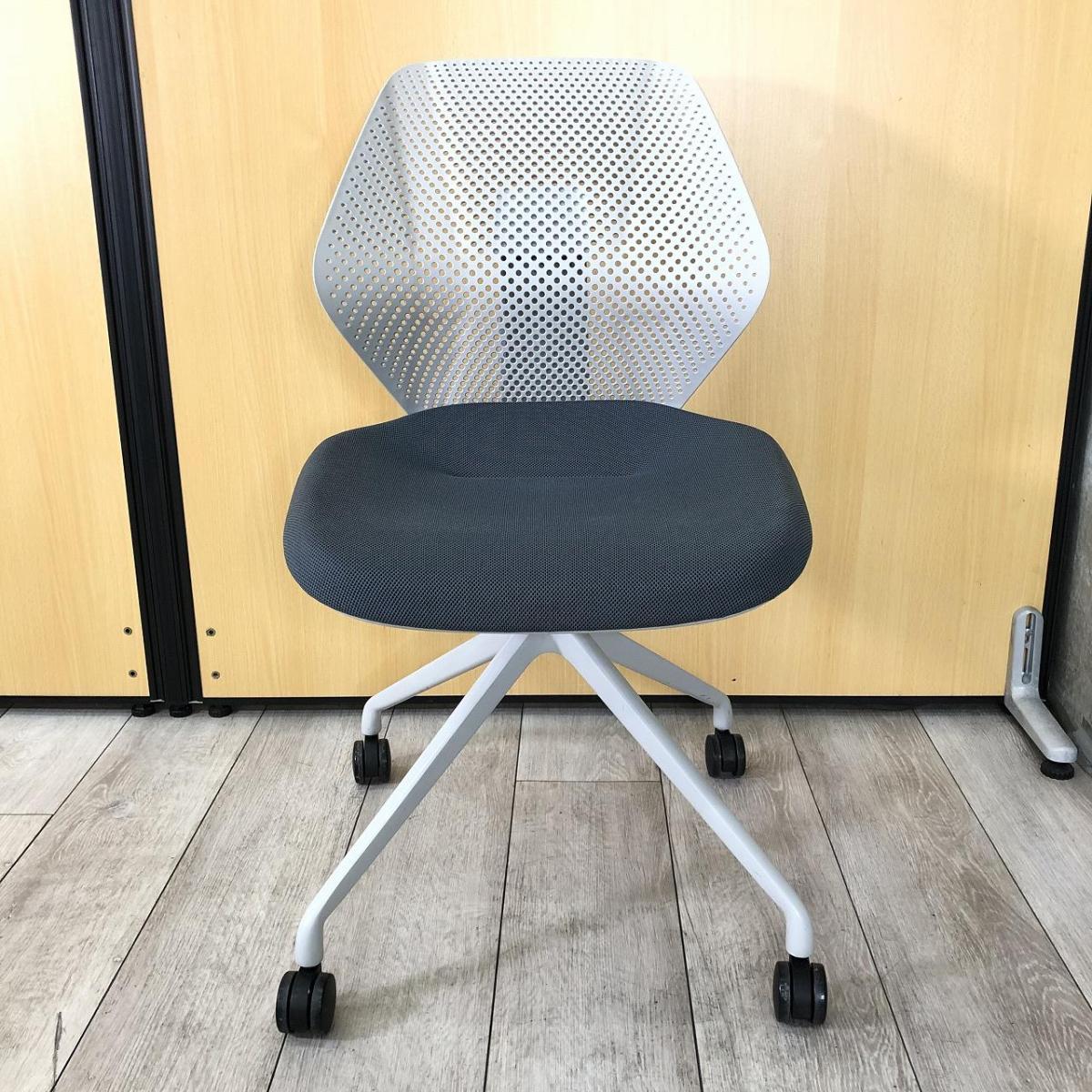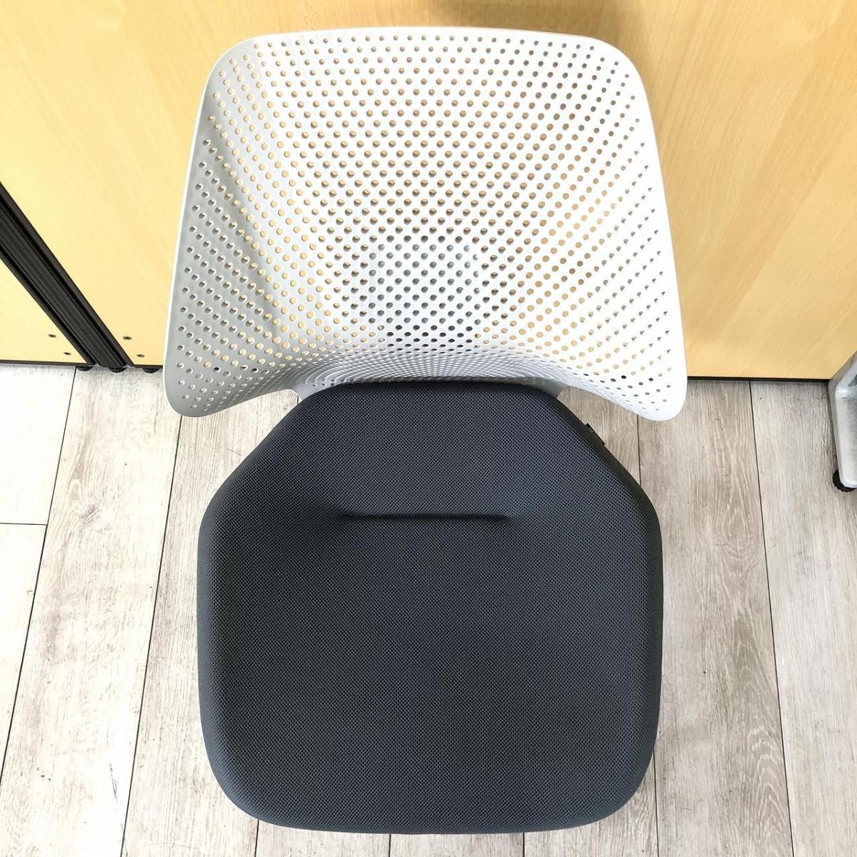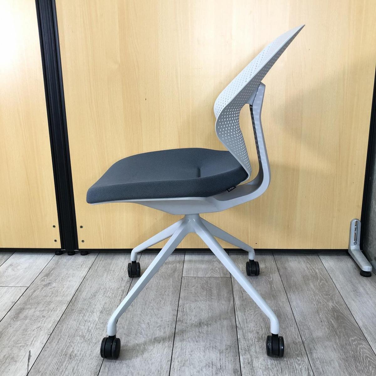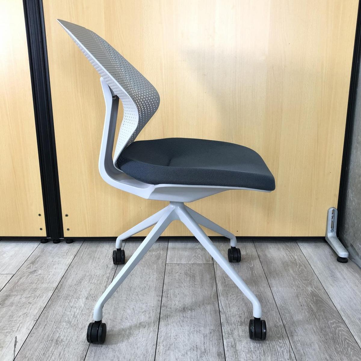 【オフィスに新しい風を吹き込むライトタスクチェア!】【腰回りをしっかりサポート!】■イトーキ製(ITOKI)製 キュアチェア(QuA) 肘無し ミーティングチェア 4本脚 背面樹脂メッシュタイプ ■ダークグレー×グレーシェル×ホワイト脚- 大阪・堺店