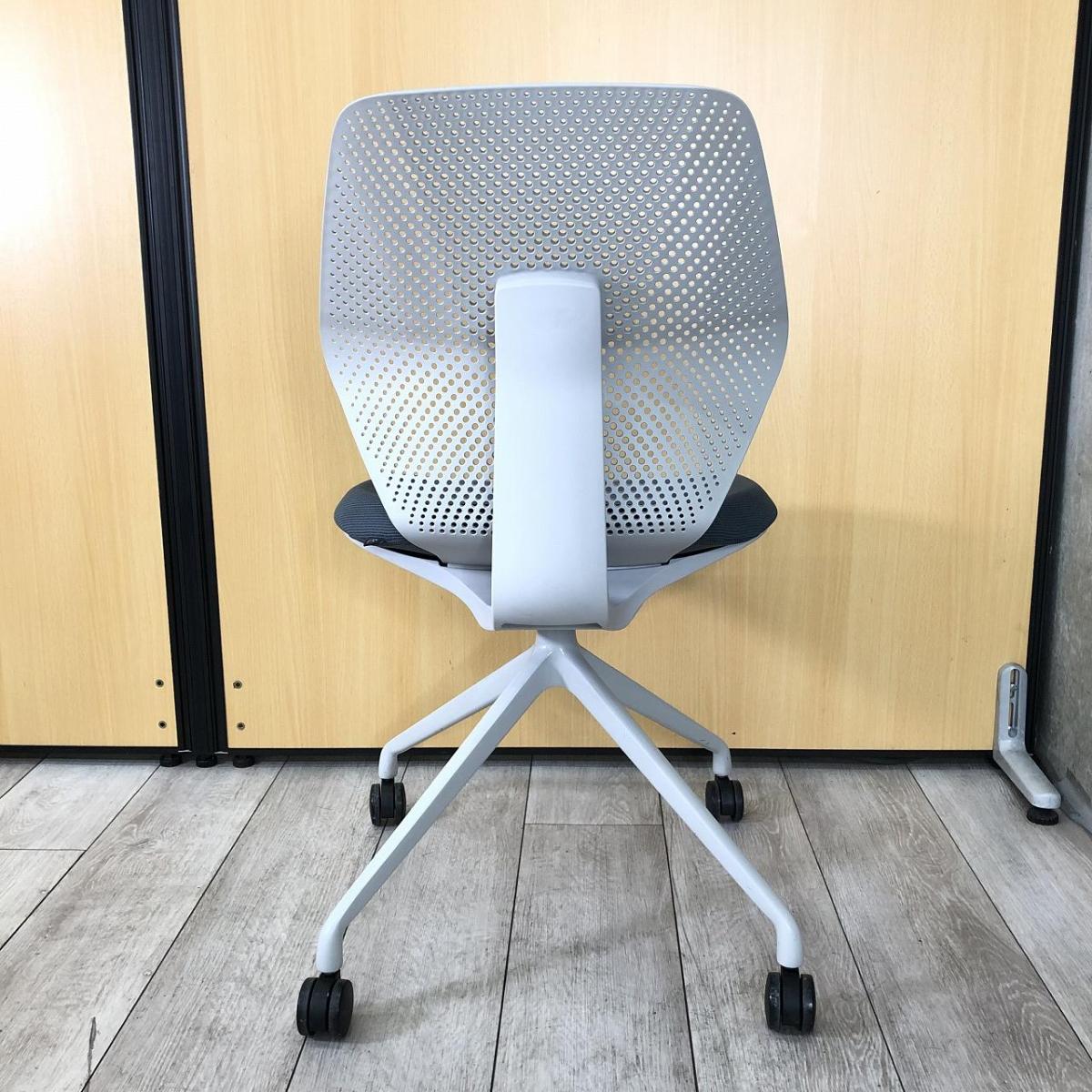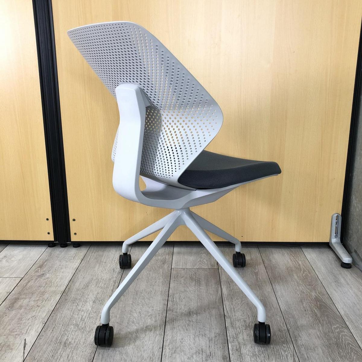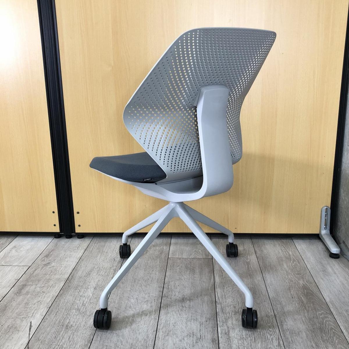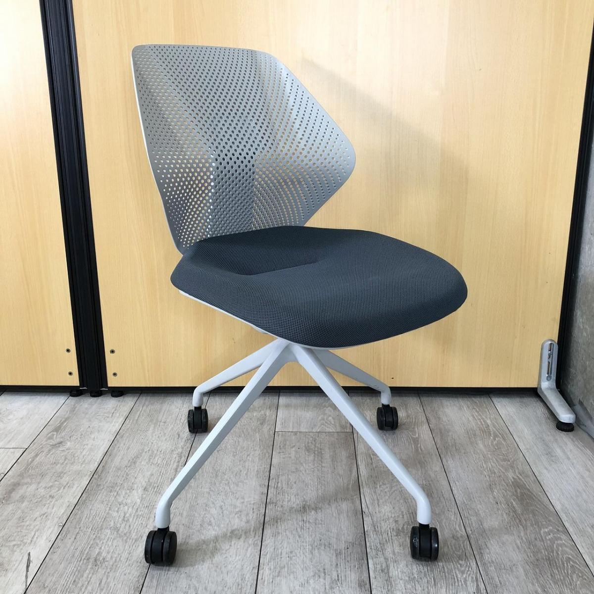 【オフィスに新しい風を吹き込むライトタスクチェア!】【腰回りをしっかりサポート!】■イトーキ製(ITOKI)製 キュアチェア(QuA) 肘無し ミーティングチェア 4本脚 背面樹脂メッシュタイプ ■ダークグレー×グレーシェル×ホワイト脚- 大阪・堺店