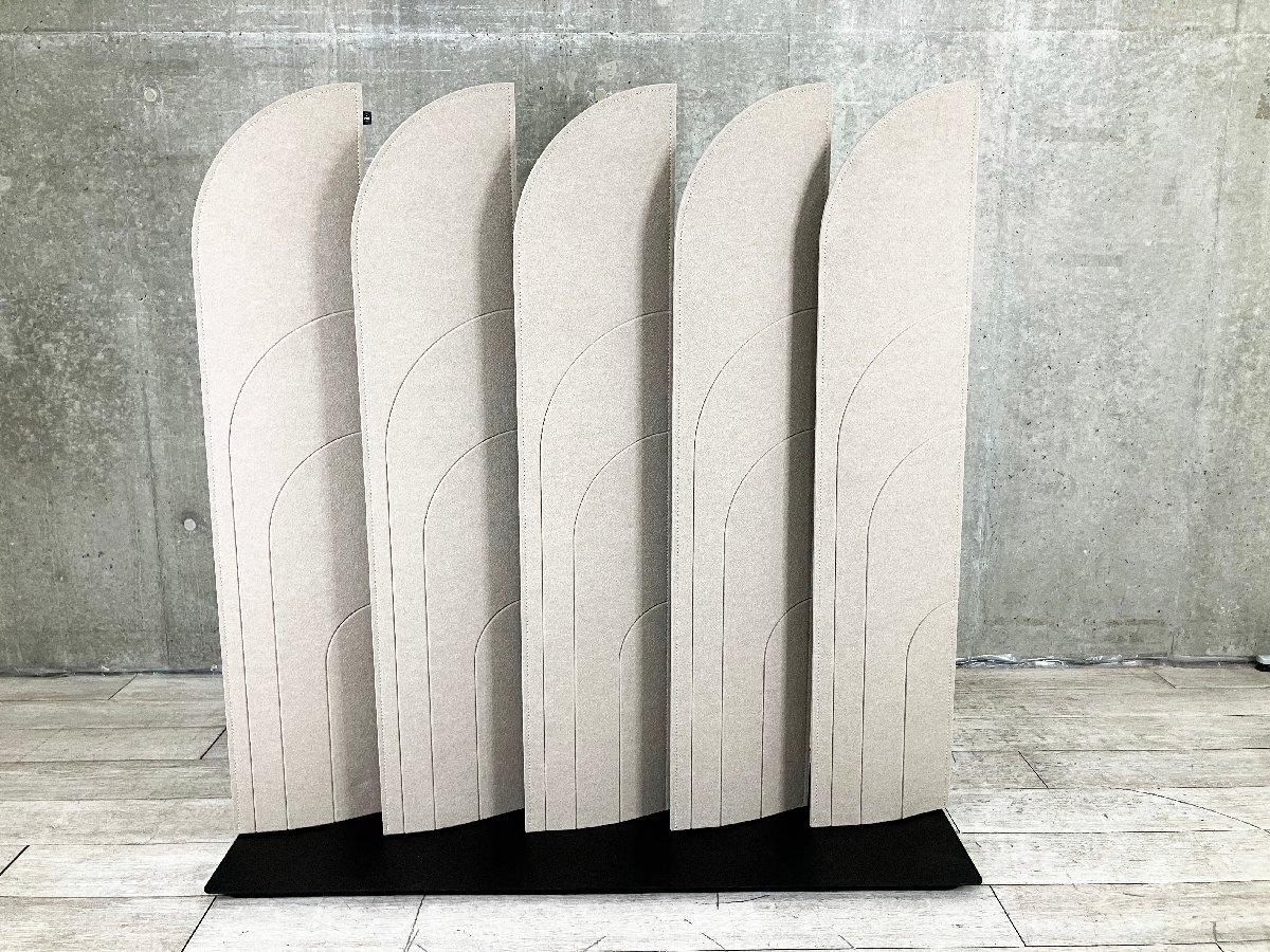 2007年にベルギーで創業したメーカー『BuzziSpace』より、装飾的で吸音機能を備えている自立式パーテーション『バジーブラインド』です。