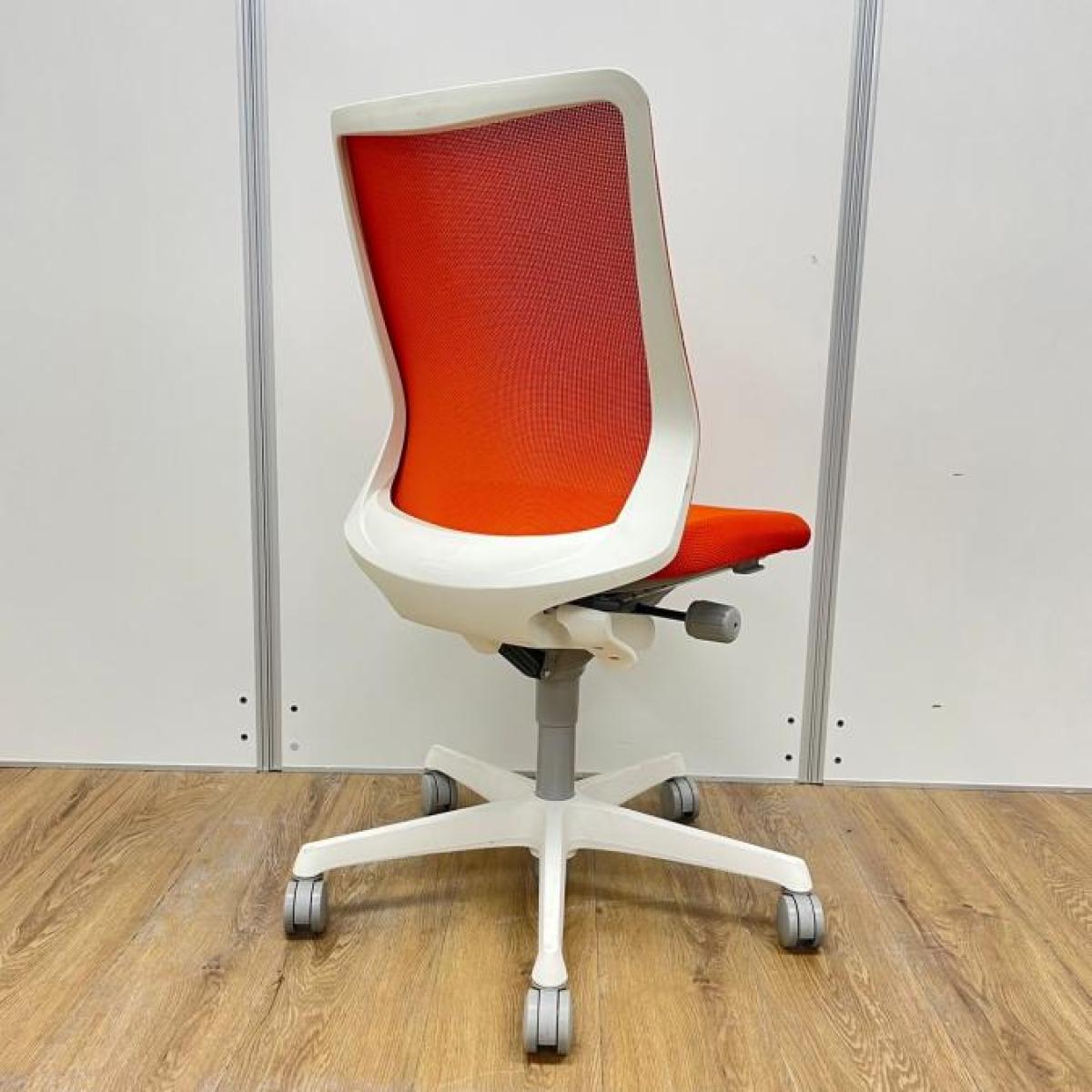 オカムラ製 フルーエント(Fluent) オレンジレッド ホワイトフレーム 肘無し ローバック 背面メッシュ 背中を立体的に包み込む! シルフィの座り心地を低コストで再現! 肘無しローバックチェア!!