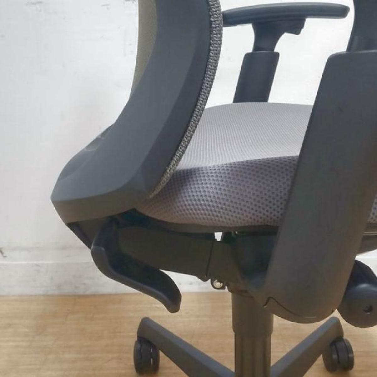【在庫入替】【1脚限定】【クレジット決済優先】 現行モデルの人気チェア 通気性抜群!背面のメッシュが背中を包み込みます! オカムラ フルーエント ミディアムグレー 可動肘付 オフィスバスターズ 梅田本店