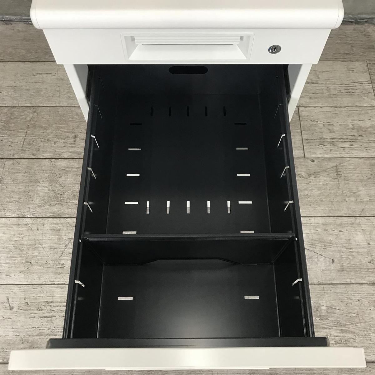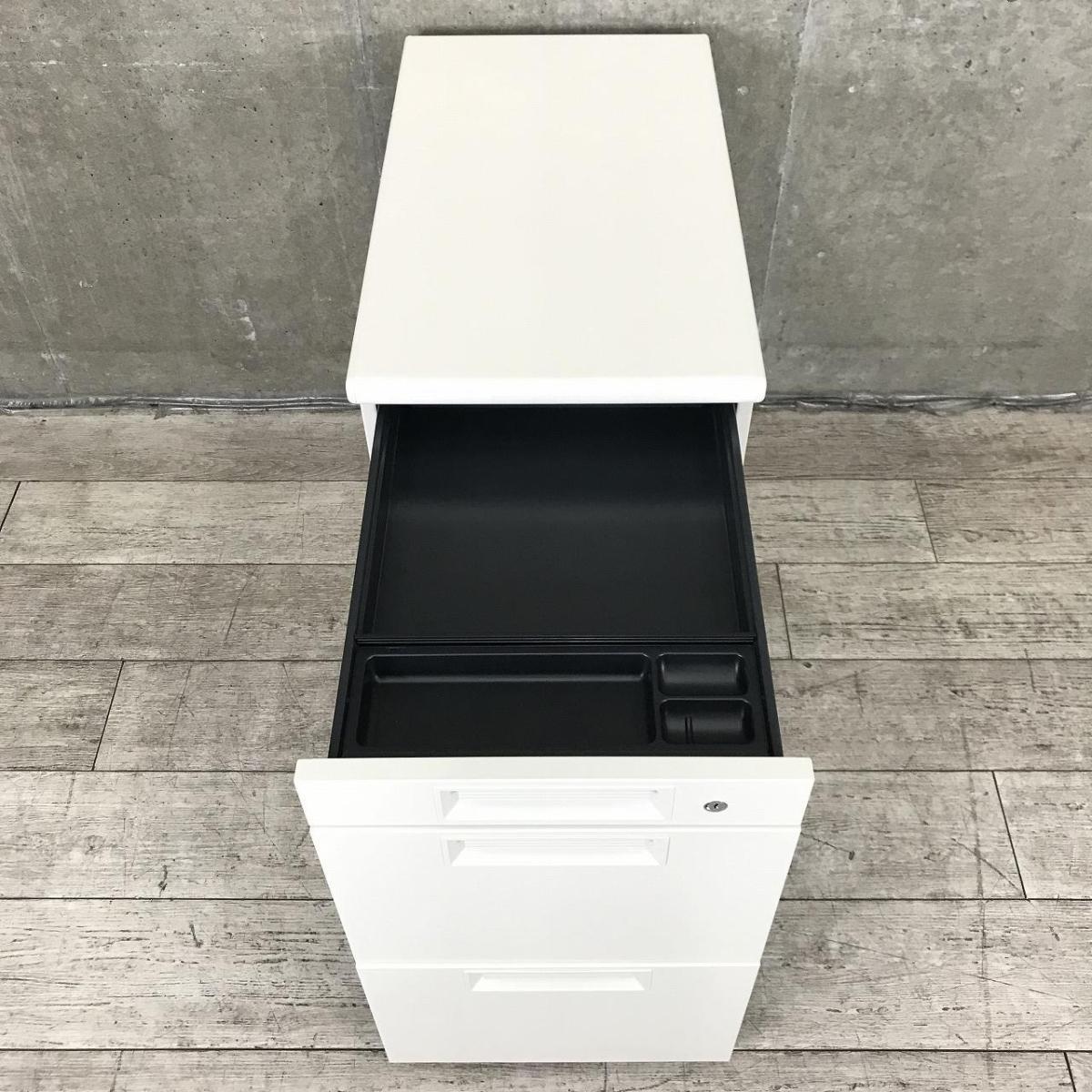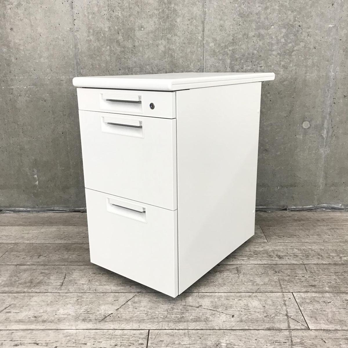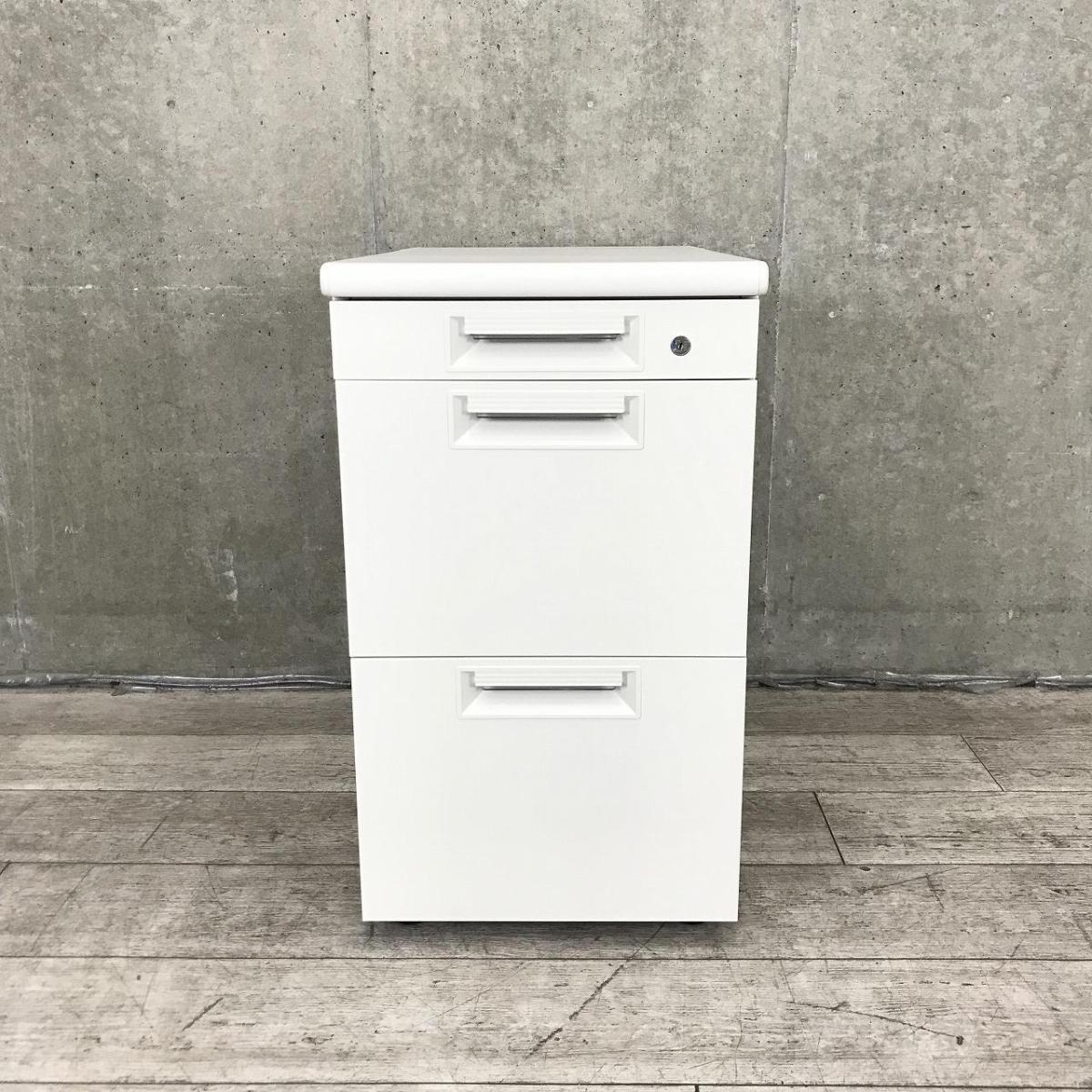 【追加の収納をお考えの方に最適な3段脇机!A4ファイルも沢山収納可能!】■プラス(PLUS)製 LEEDシリーズ 3段脇机 ワゴン ■W400×D700×H700㎜ ■ホワイト ■シリンダー錠- 春日部・越谷店