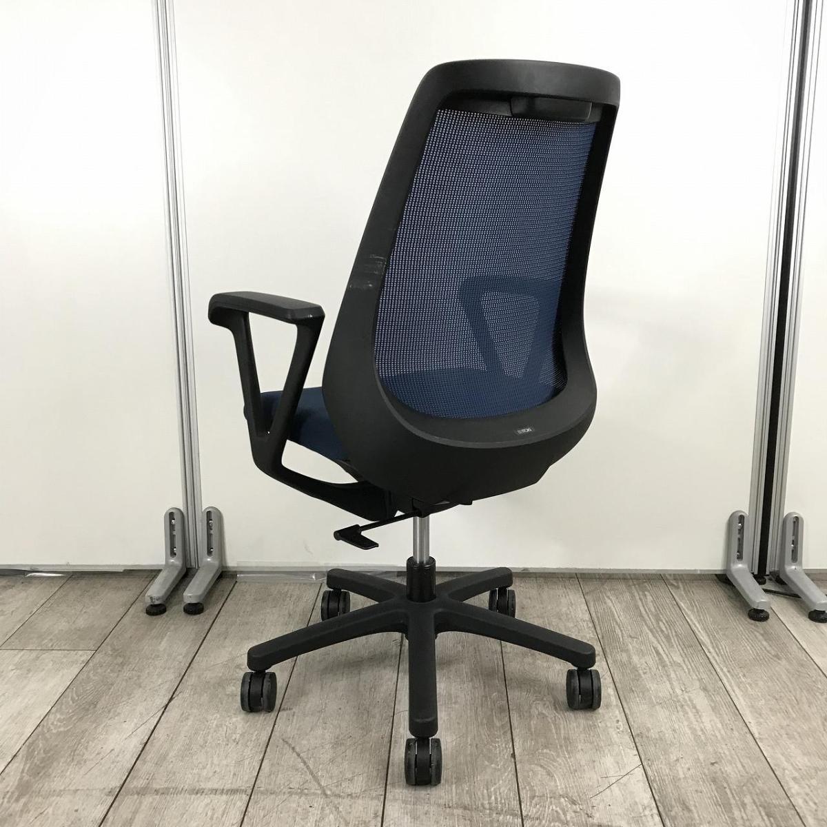 ★【K12】【T12】【商品入替のため、残り1脚限り】イトーキ製 ノナ ネイビーブルー ブラックフレーム 肘付き アジャスタブル※可動肘 ハイバック 背面メッシュ コートハンガー付 脚回りがコンパクトのため省スペースでも設置しやすい! 肘付きハイバックチェア