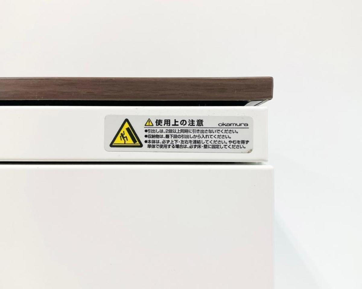 オカムラ レクトライン 3段ラテラル書庫 ホワイト天板 シリンダー錠 鍵付き ※取っ手部分に若干日焼けあり