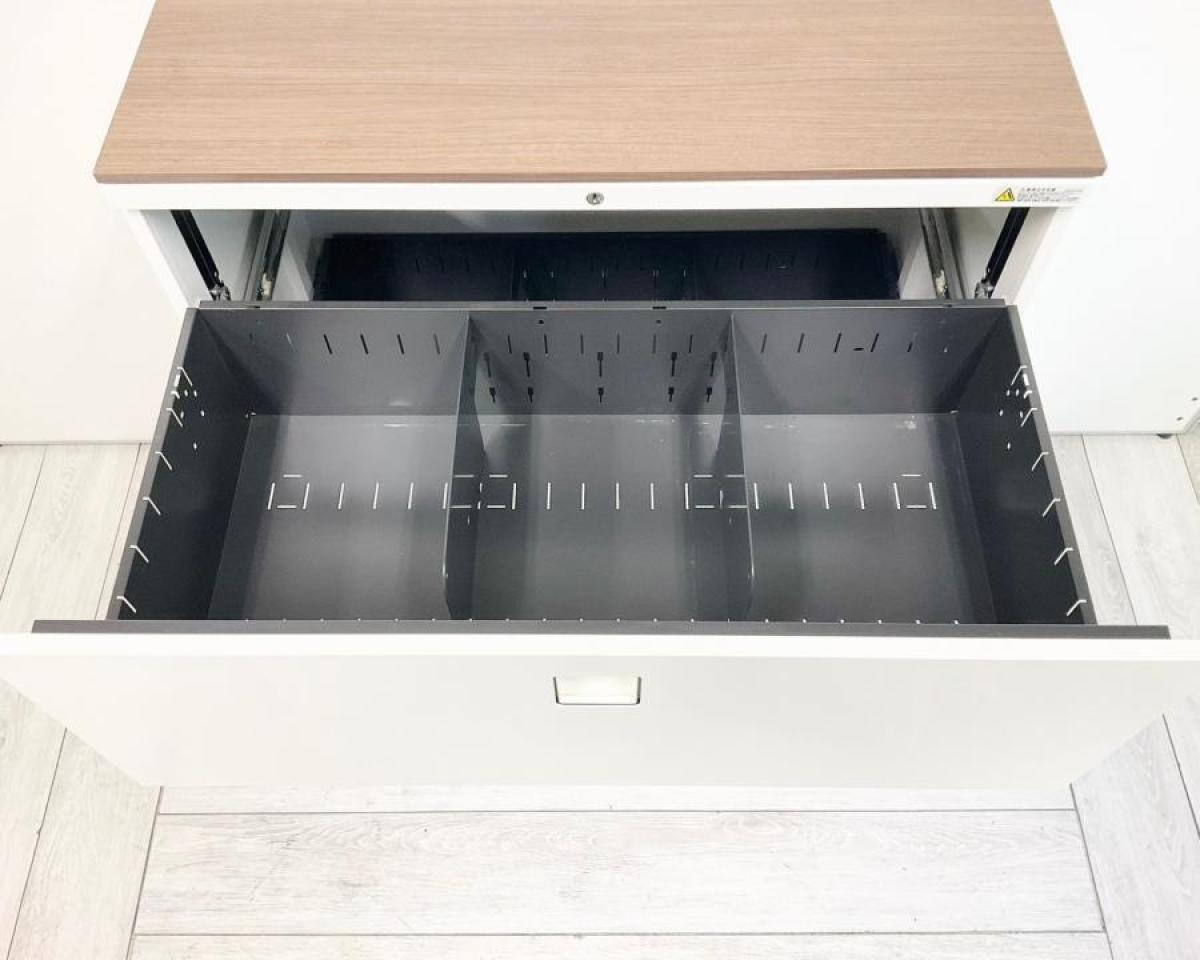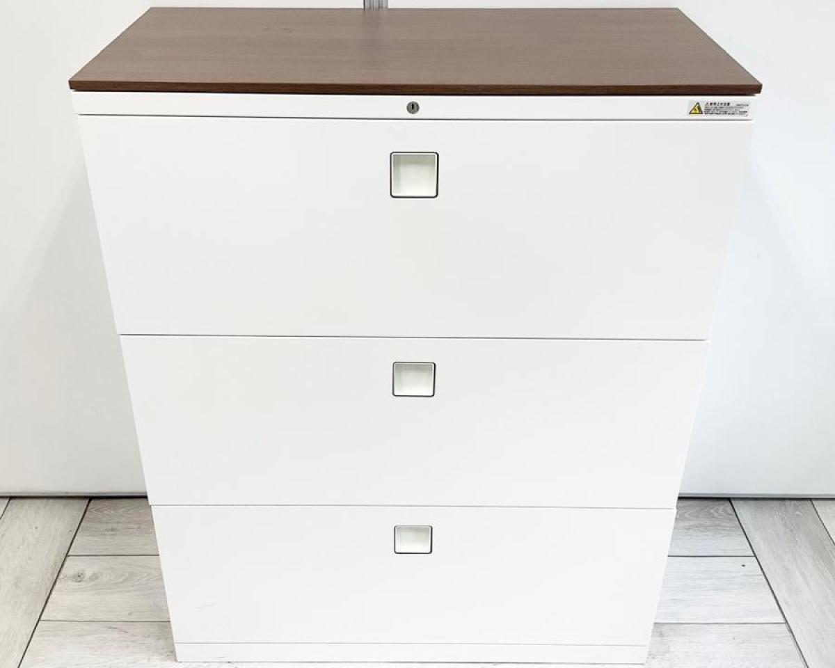 【使いやすさで選ぶならコレ!大容量の三段キャビネット】■オカムラ(Okamura)製 レクトラインシリーズ(Rectline) 3段ラテラル書庫 ローキャビネット ■天板付き ■シリンダー錠【IB】