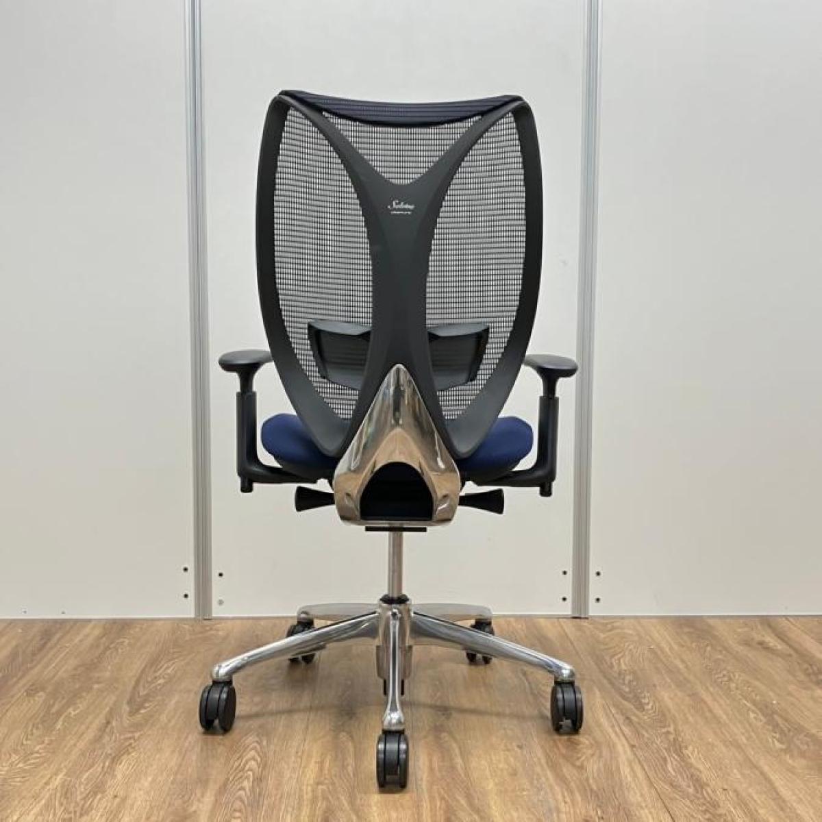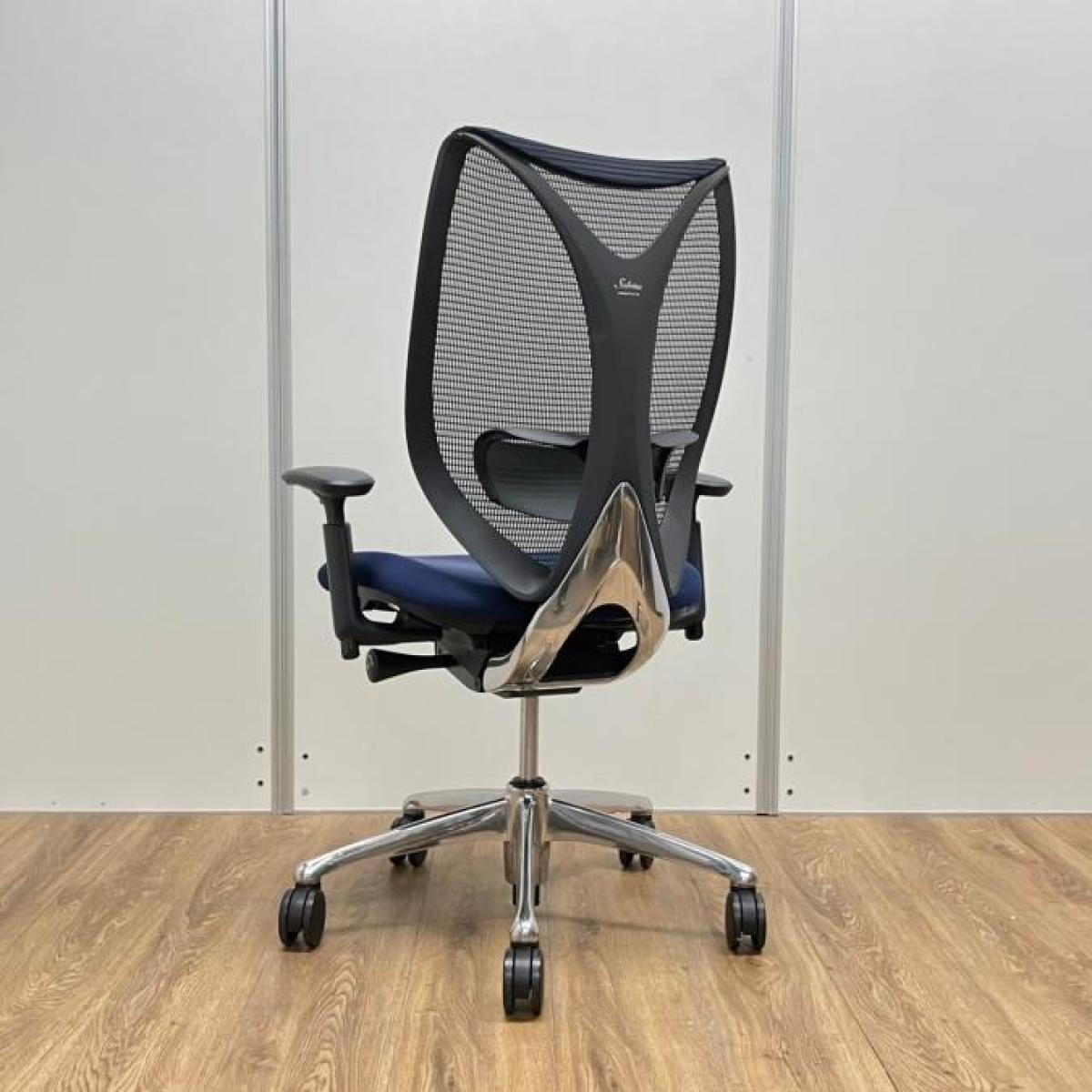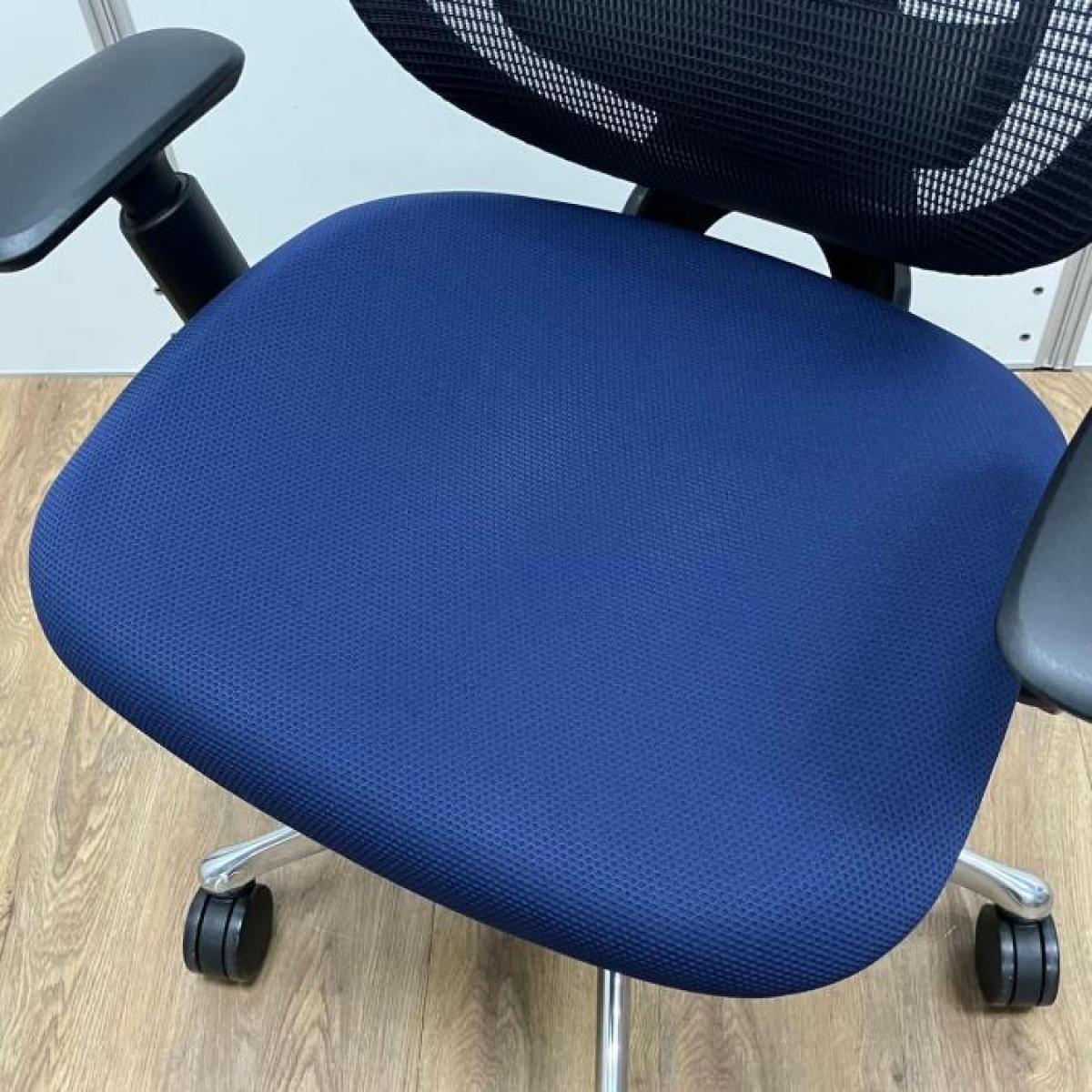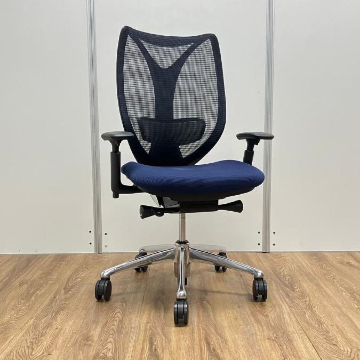 【前傾チルト付きで作業効率アップ!オフィスにもご自宅用にも人気!】■ハイバック背面メッシュ ネイビーブルー × ブラックシェル/オカムラ/サブリナ- 池袋店