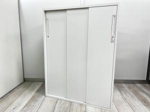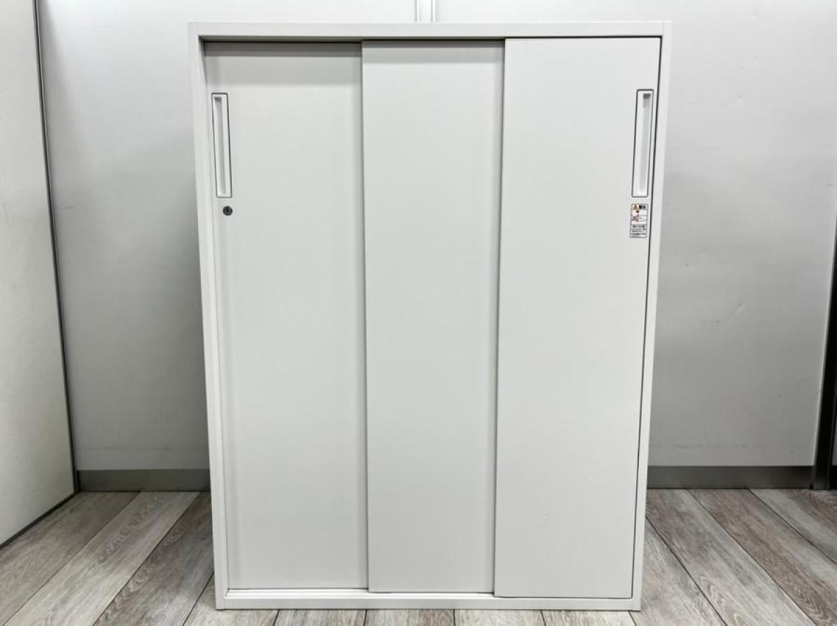 3枚引き戸書庫 コクヨ エディア 鍵付き(シリンダー錠) 天板付き 清潔感のあるホワイトキャビネット 導線を邪魔しないスライド式の扉