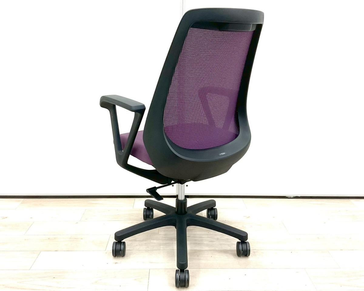 【在庫入替セール!】■イトーキ(ITOKI)製 ノナ(nona)チェア ハイバック 肘付き ■サークル肘 ■背面メッシュ ■プラムパープル × ブラックシェル【T12】