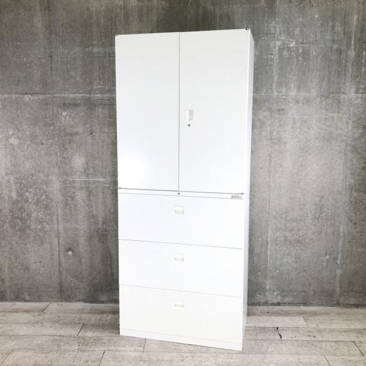 【人気の観音開き+引き出し仕様!書類整理におすすめ!】■オカムラ SAデュオライン 書庫セット ■両開き+3段ラテラル ■ホワイト【2412】弊社使用欄【A00988551/A01026875】