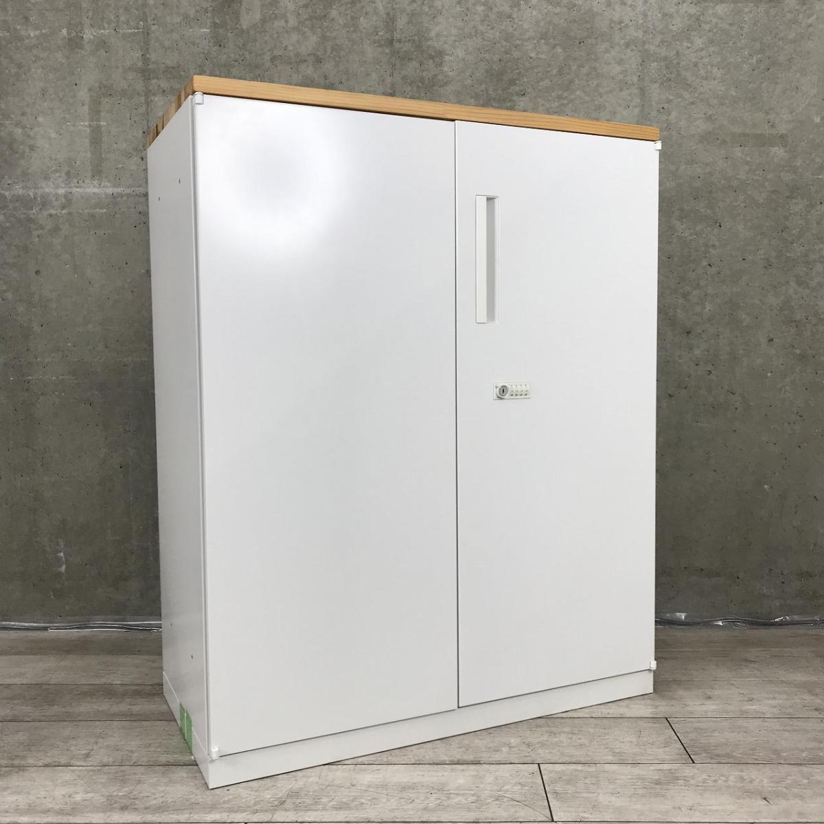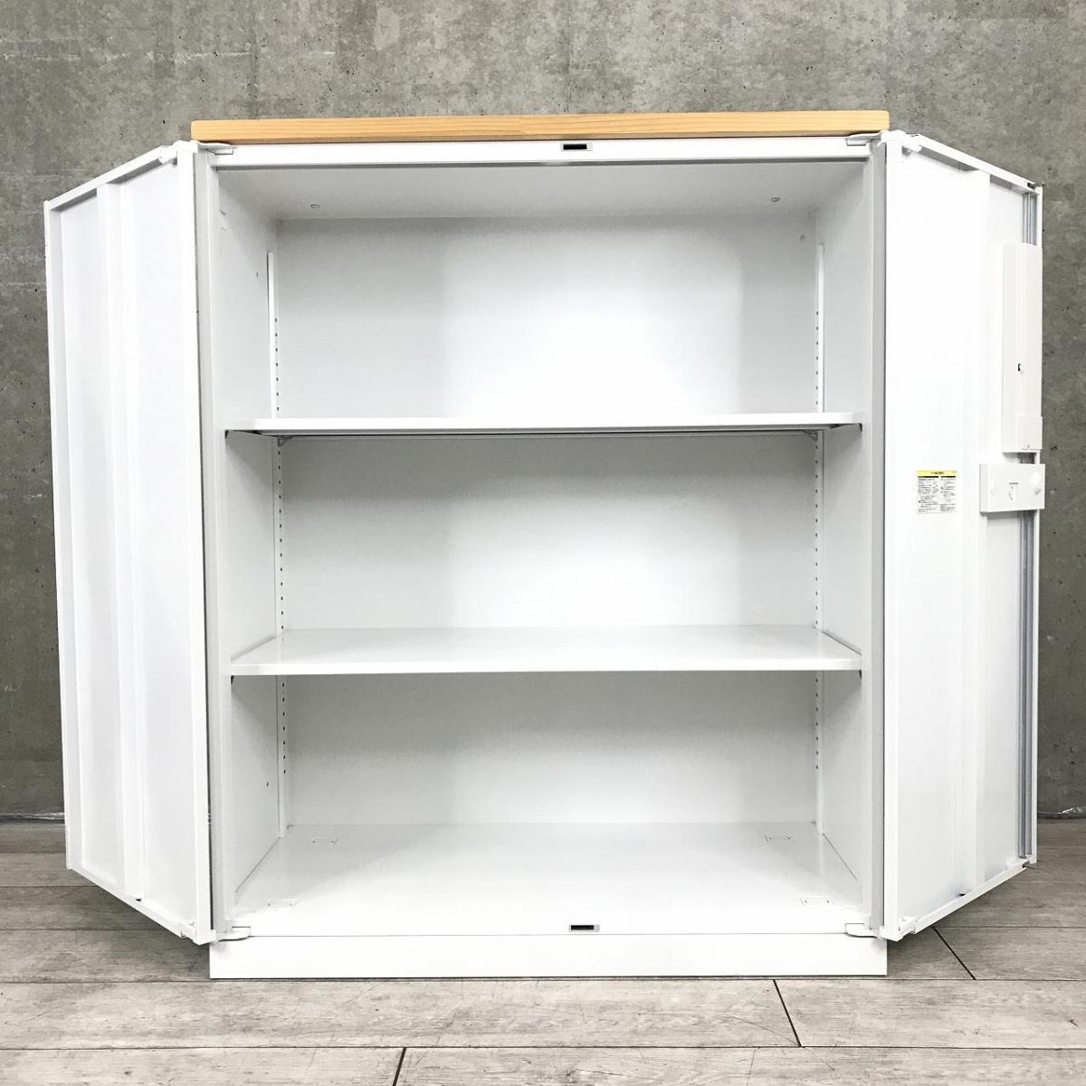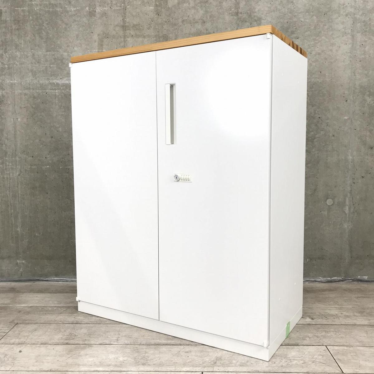 【在庫入替セール品!】人気の観音開きタイプ!取っ手が大きく使い勝手のよい定番キャビネット! ■内田洋行/HSシリーズ/ホワイト 天板ナチュラル