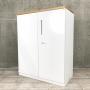 【定価約7万円】【収納物を見渡しやすい定番の両開き書庫!A4ファイルも楽々収納!】■両開き ローキャビネット ■シリンダー錠 ■本体:ホワイト / 天板:ナチュラル木目調/ウチダ(UCHIDA)製 ハイパーストレージ(HS)シリーズ