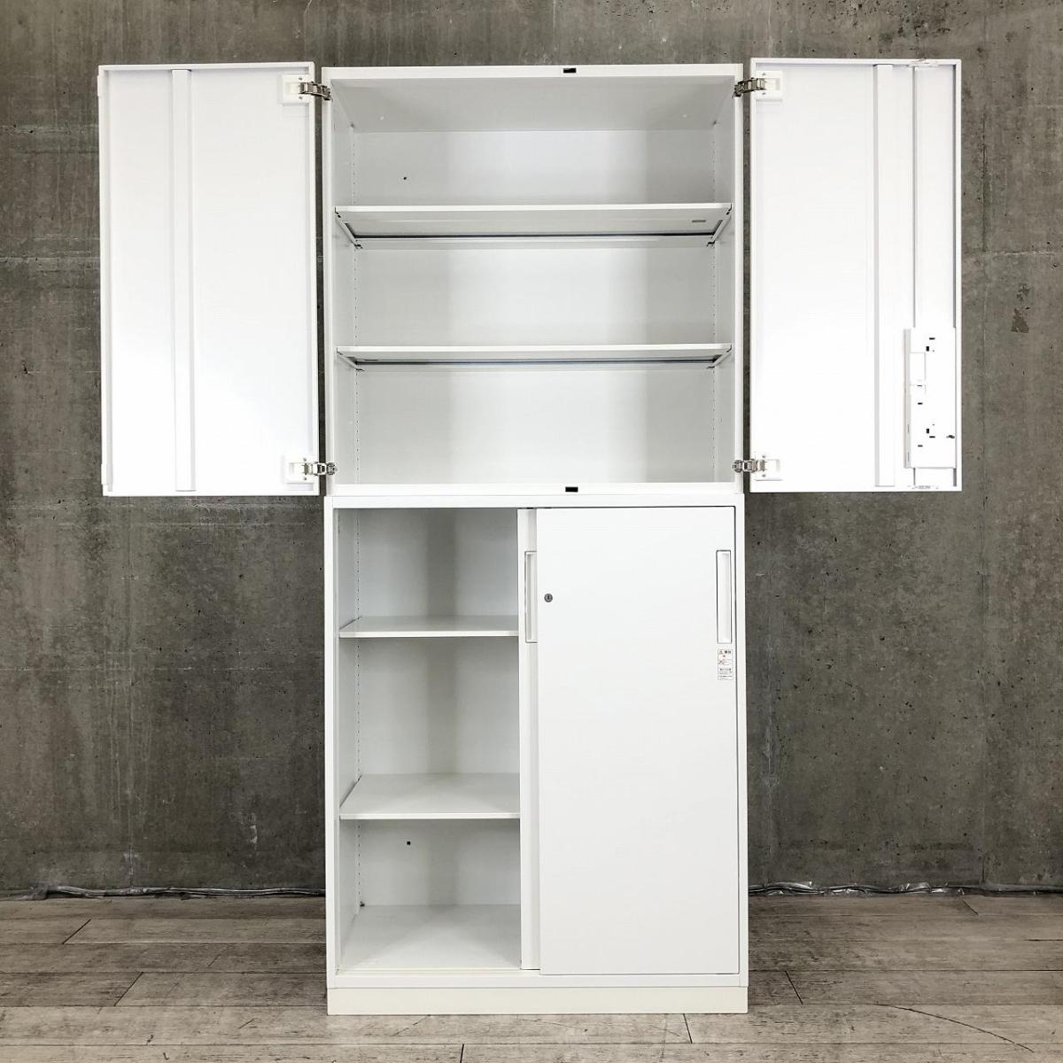 【オフィスの書類をまとめて整理!希少な両開き+引き違い書庫セットが入荷!!】■コクヨ(KOKUYO)製 エディアシリーズ 両開き+引き違い 書庫セット H2015㎜ ■2枚扉 ■シリンダー錠 ■ホワイト【AD】