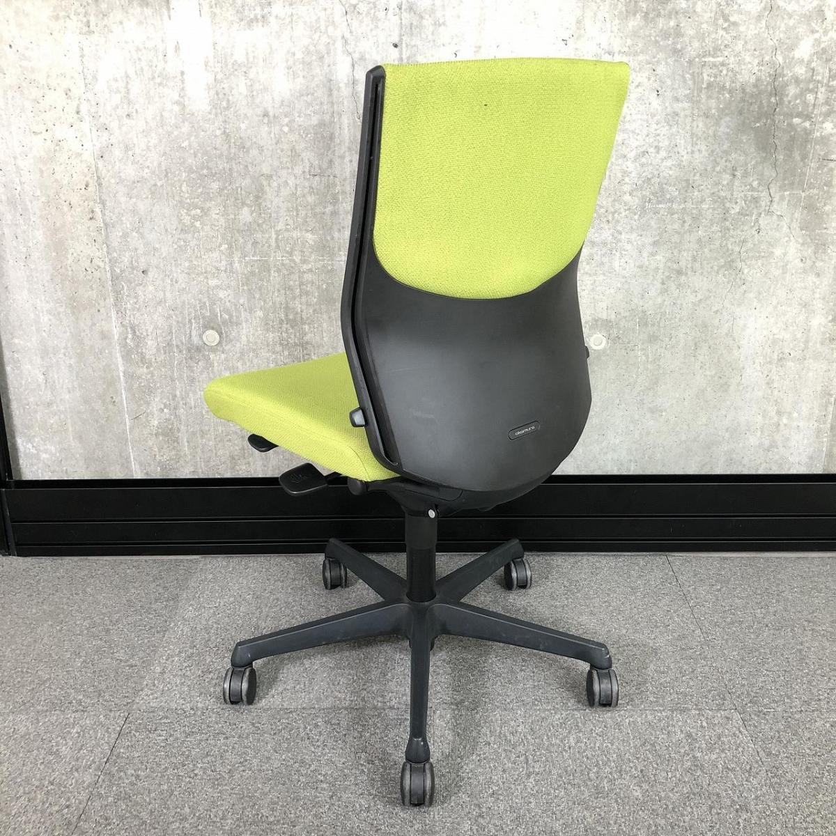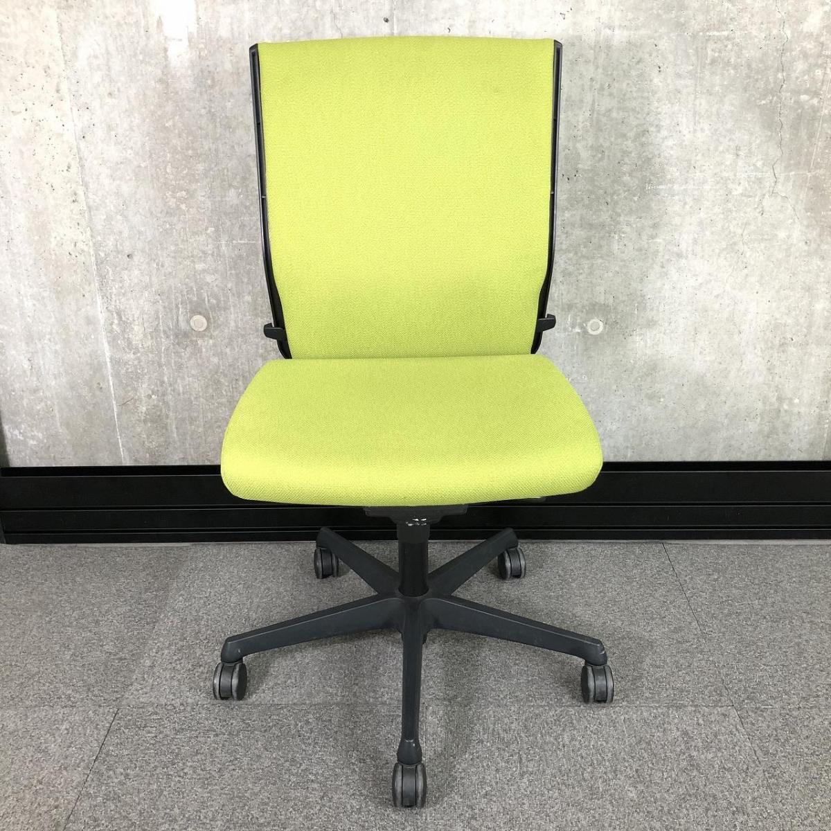 【コストパフォーマンスに優れたオススメチェア!】オカムラ エスクード 肘無ハイバックチェア イエローグリーン ランバーサポート付- 品川・三田店