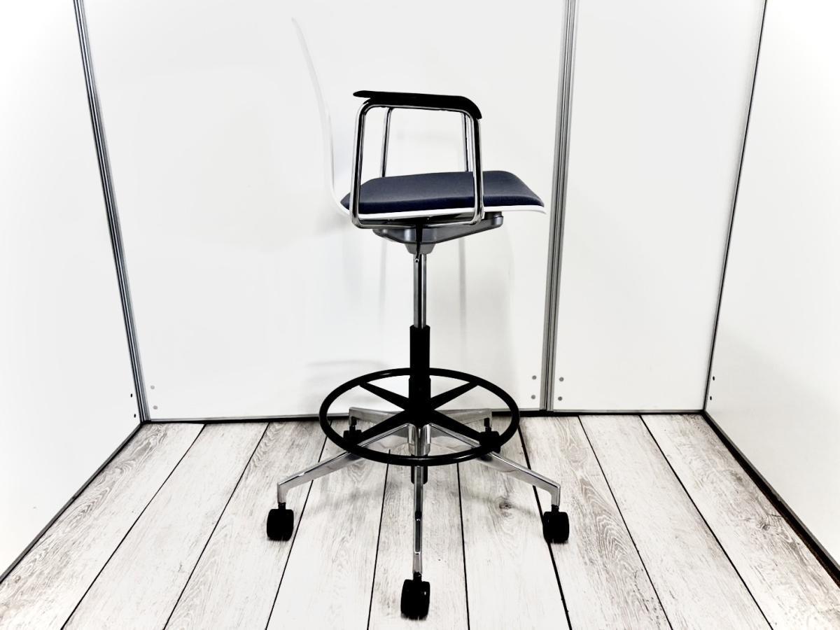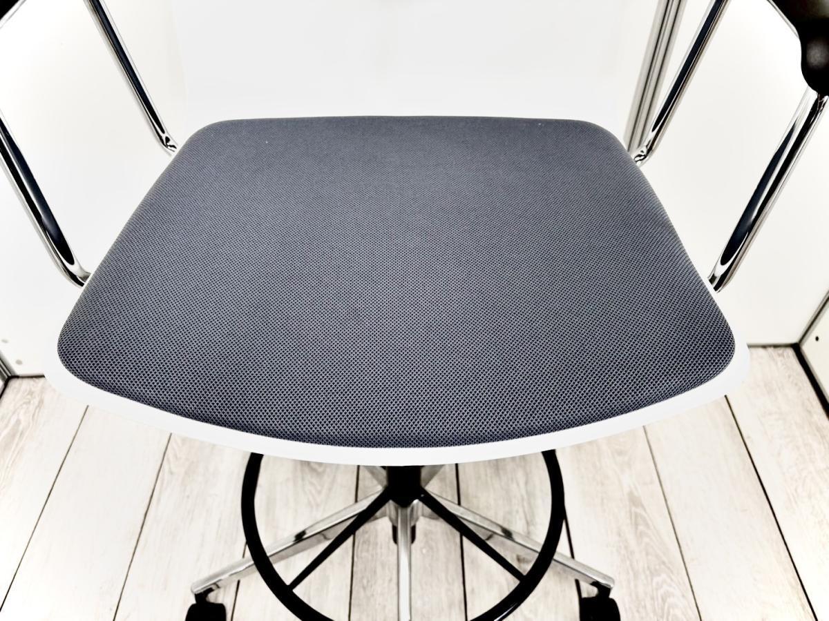 【在庫入替品】清潔感のあるスタイリッシュなデザイン!足掛け付で使い勝手抜群のハイチェア! ■内田洋行/ricco(リッコ)/ブルーグレイ- なんば日本橋店