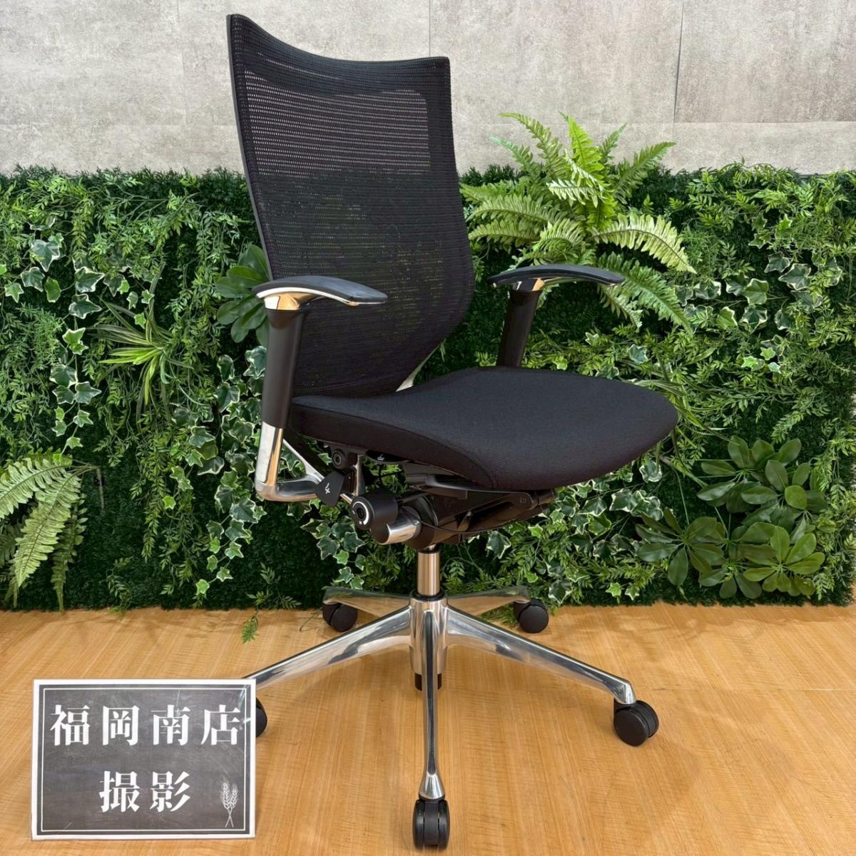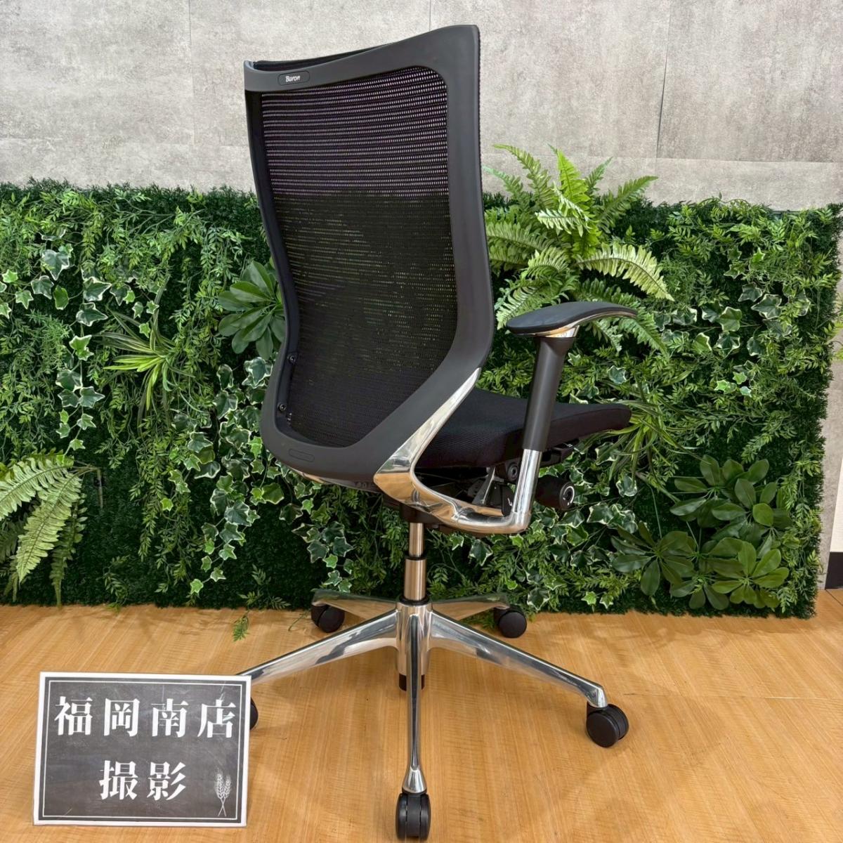 【硬めの座面が大人気!国産メッシュチェアの代表格!オフィスの執務室、会議室におすすめ!】■オカムラ(okamura)製 バロン(Baron)チェア 肘付き ハイバック 背面メッシュ ■固定肘 ■色:ブラック【IB】