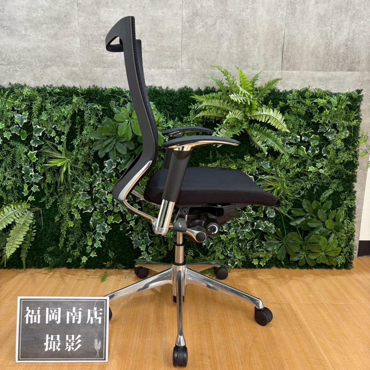 【座面メッシュ】スタンダードメッシュ ブラックフレーム アームレスト付き ヘッド付きオススメ(おすすめ) 大人気 ・Okamura/オカムラ ・Baron/バロン ※横浜本店撮影画像※