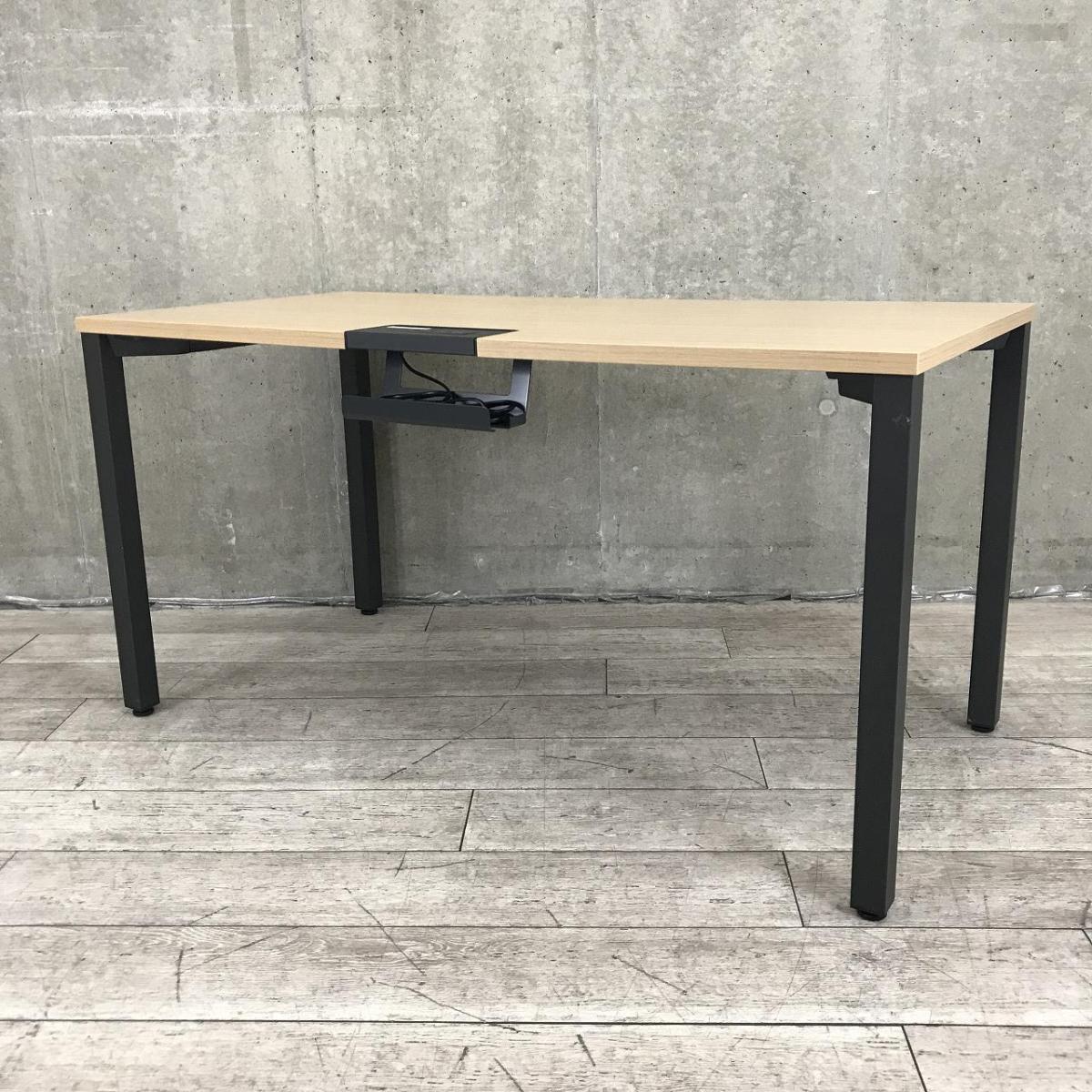 【おしゃれな木目&ブラックデスク!ゆったり使用できる幅1400mm・便利なコンセント付き!】■イトーキ(ITOKI)製 アクトリンク(Act Link)シリーズ 四角テーブル パーソナルテーブル(平机タイプ) W1400㎜ ■コンセント付 ■天板:木目ナチュラル/4本脚:ブラック- 千葉店