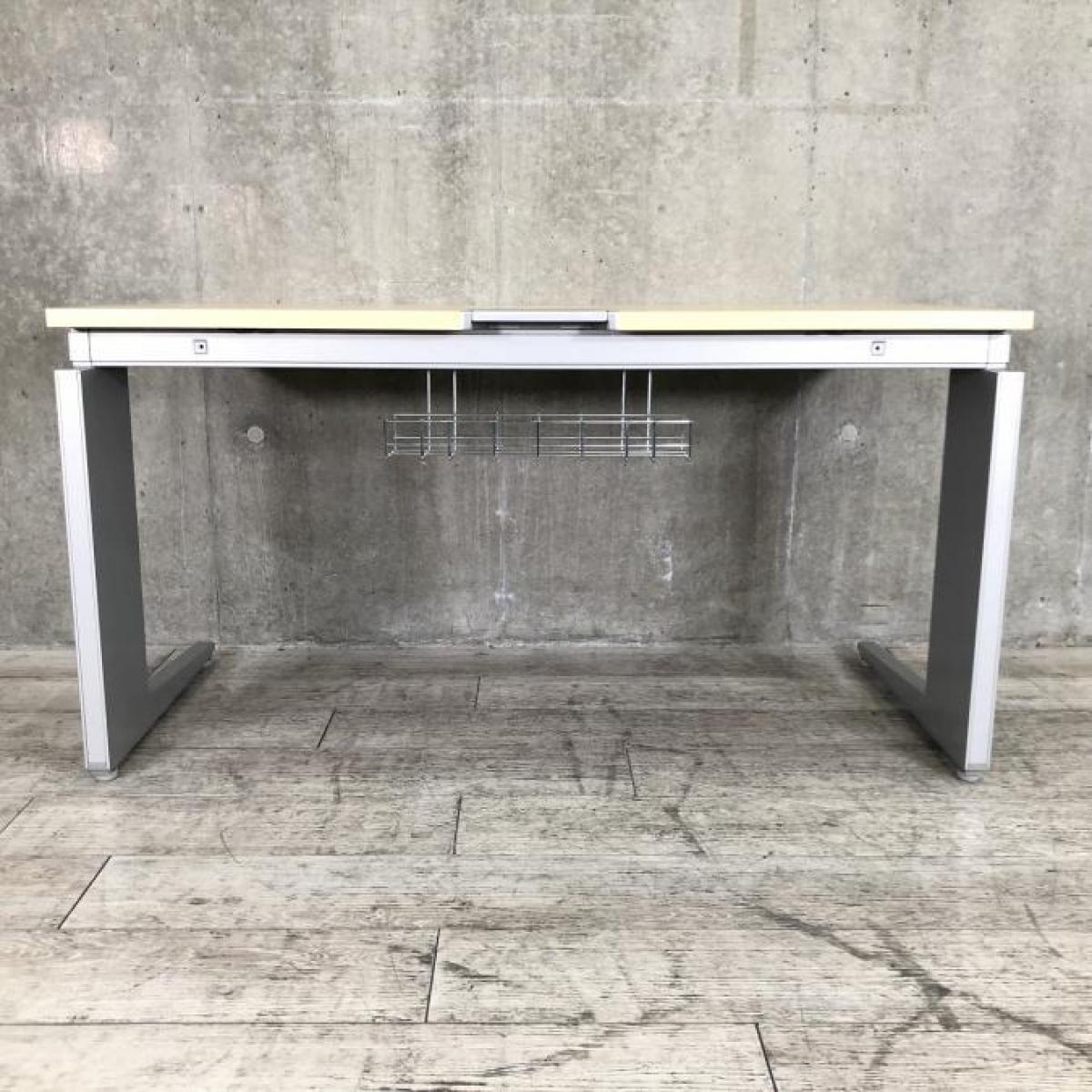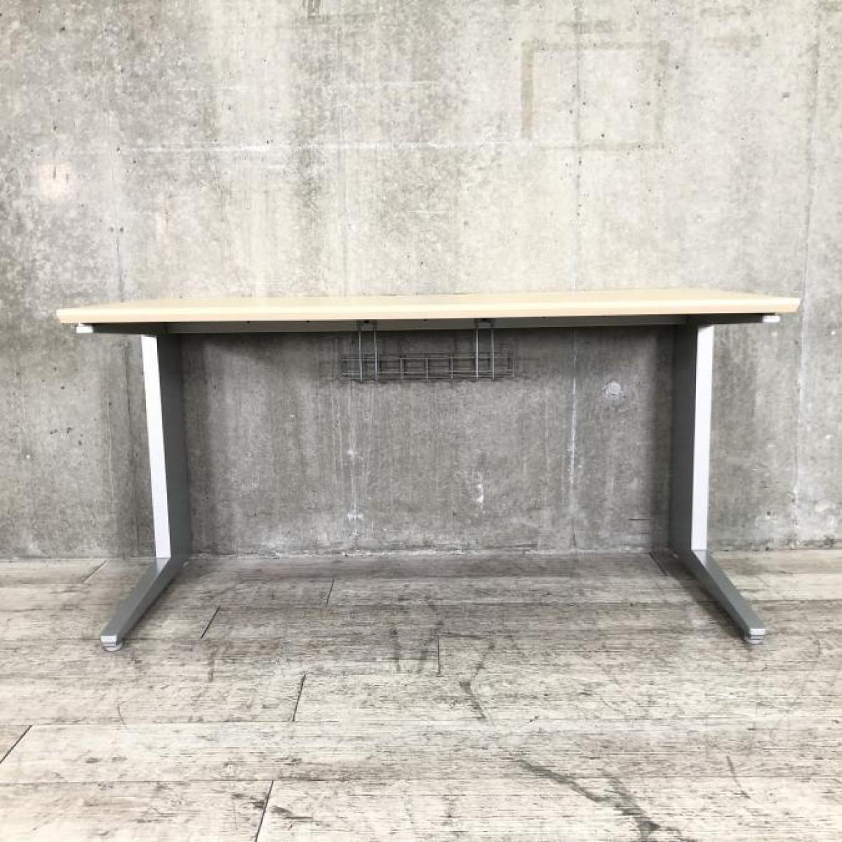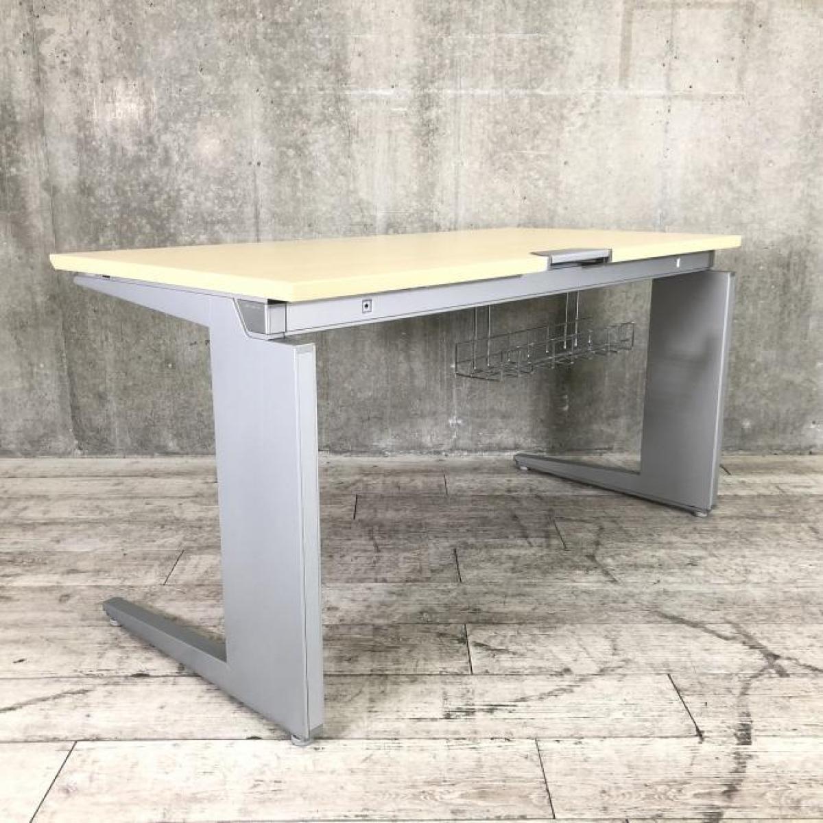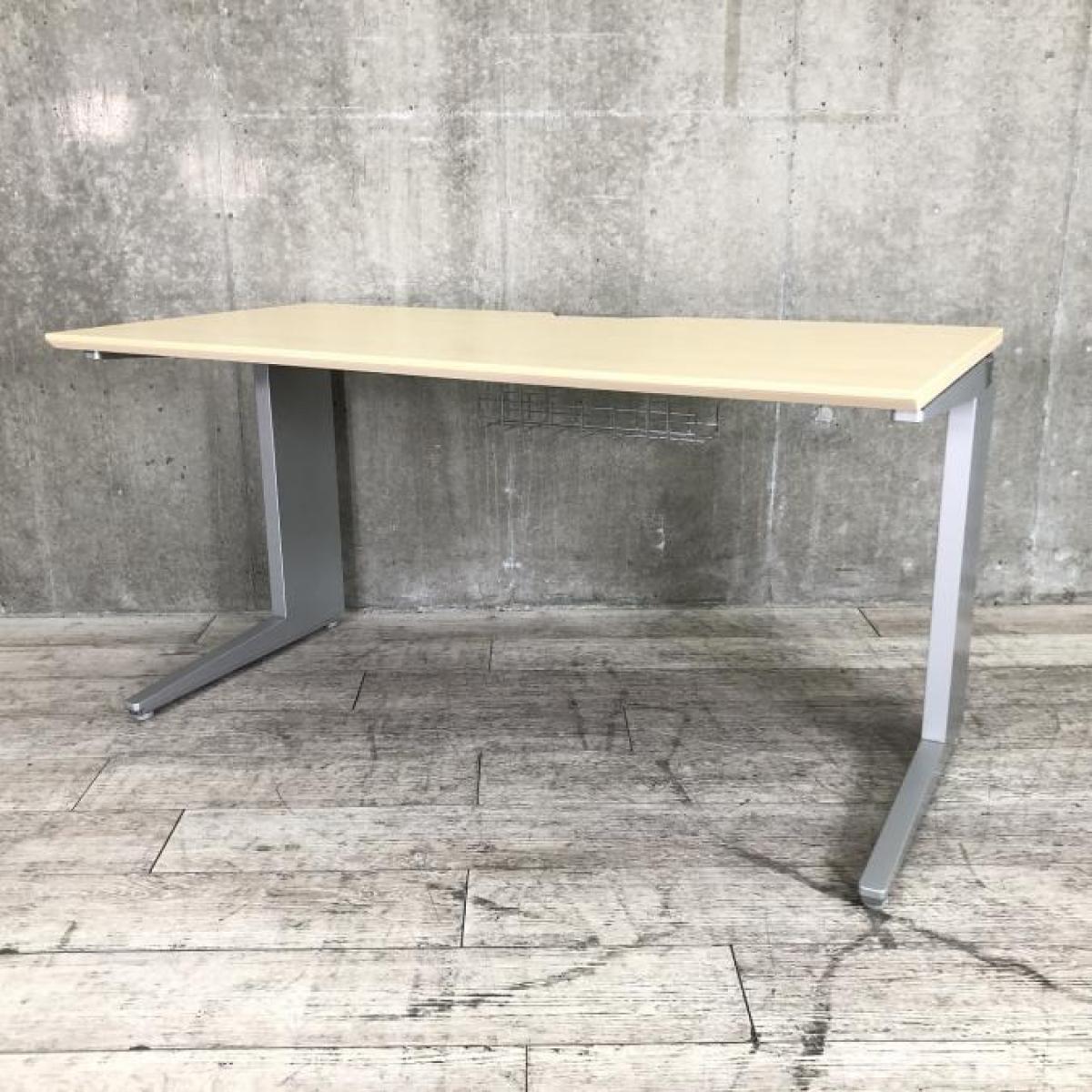 【スタイリッシュなデザインと機能性を兼ね備えたシンプルデスク!】■オカムラ(okamura)製 プロユニットシリーズ 平机 引き出し無 L字脚 W1400×D700㎜ ■天板:木目ナチュラル/シルバー【弊社使用欄:A01033767】- 日本橋店