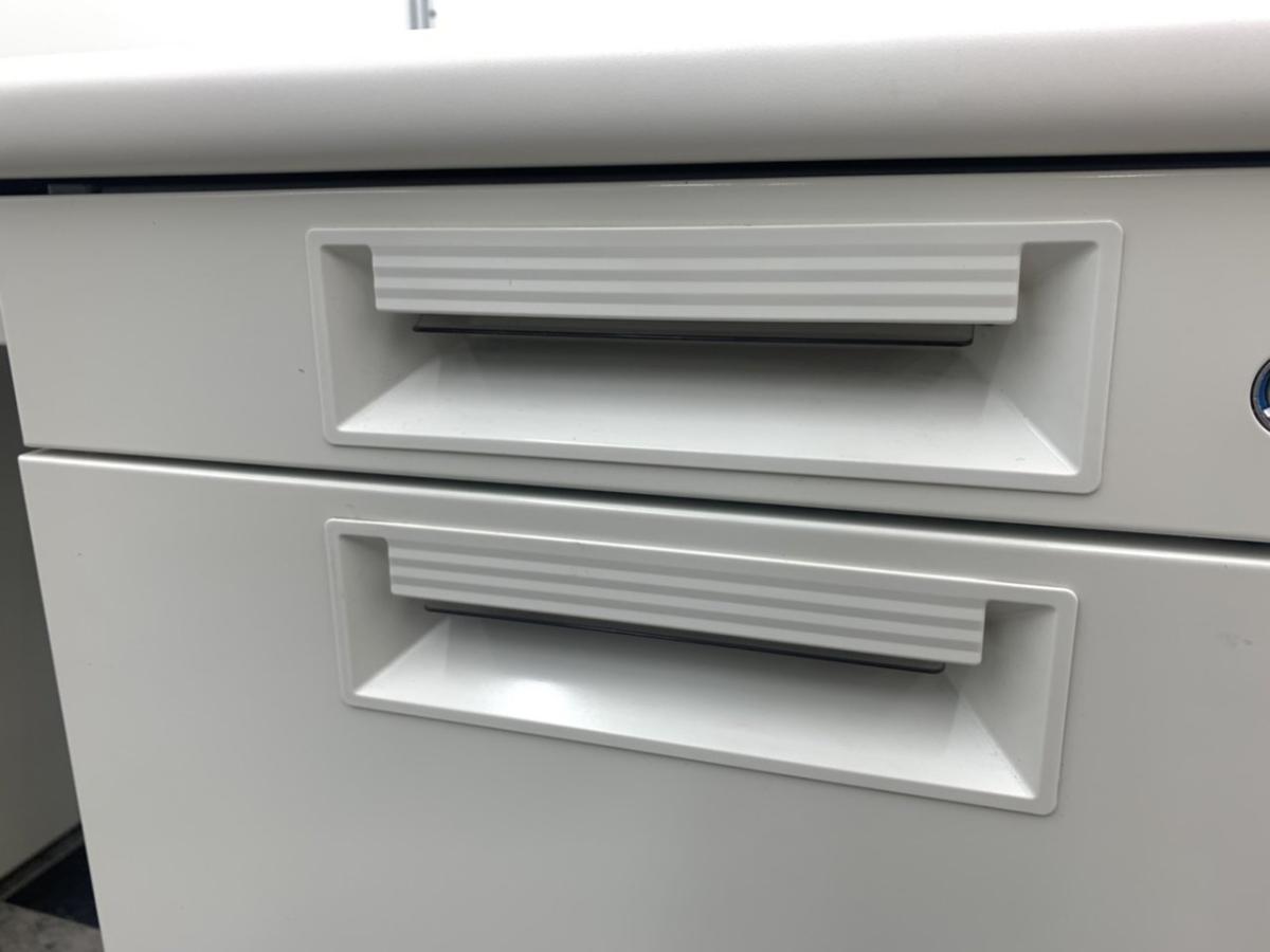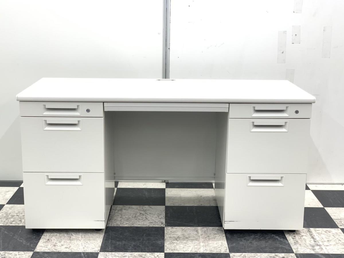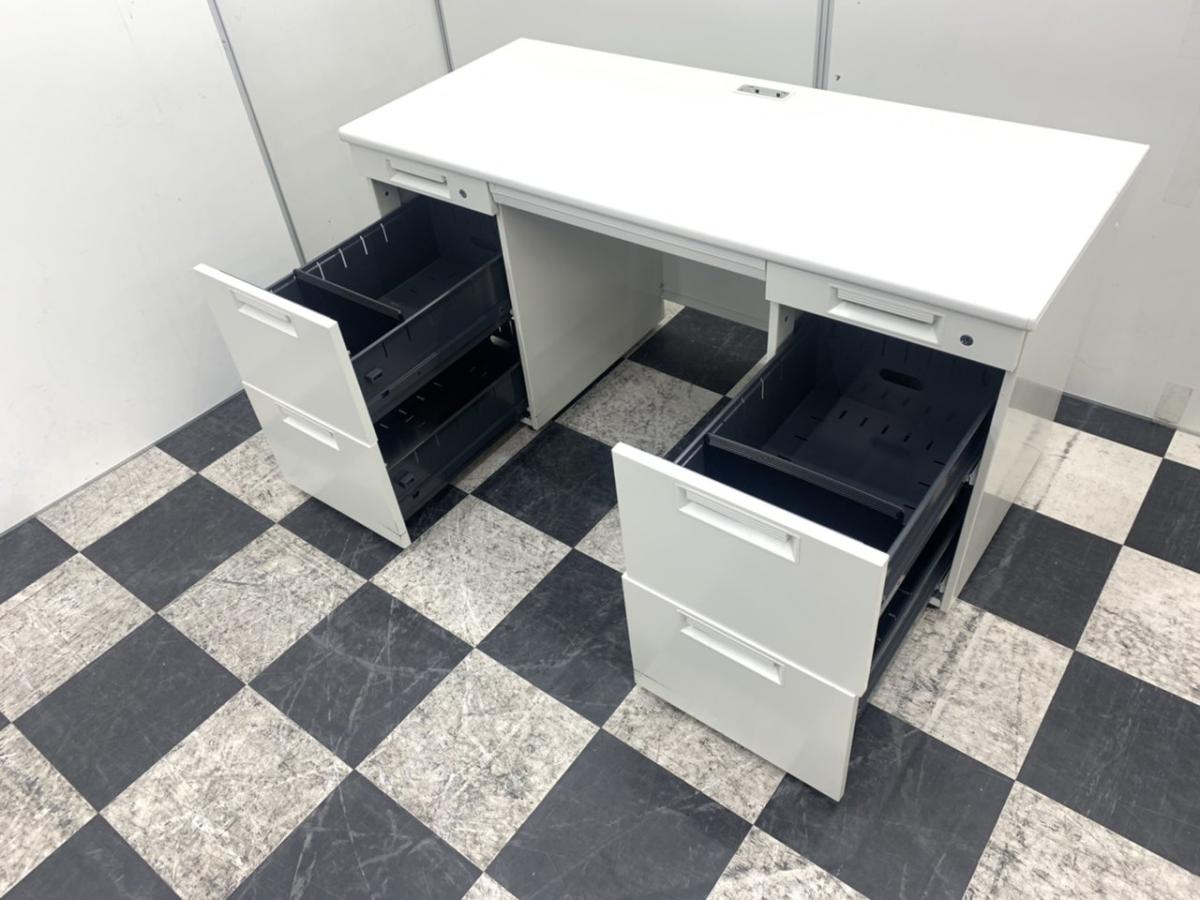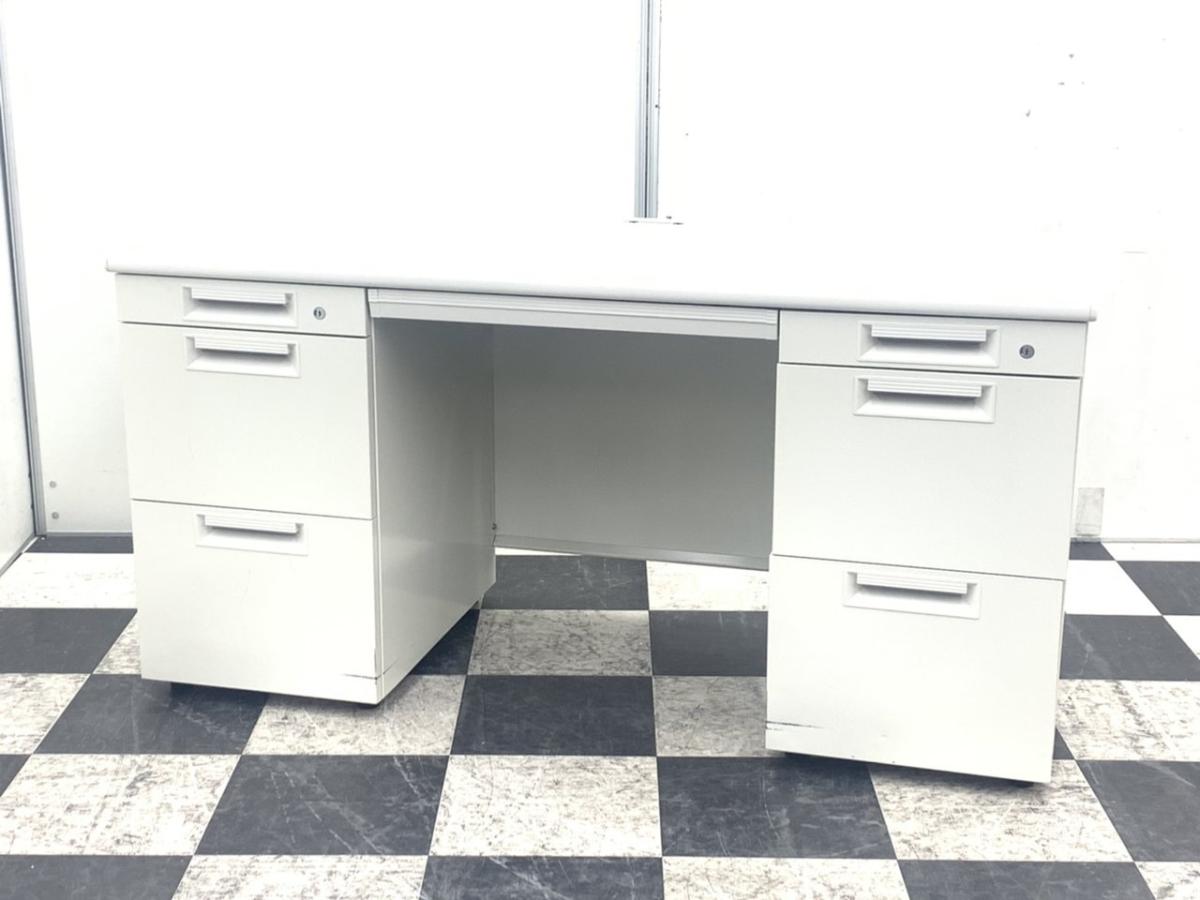 【定価約16万円】【広々としたワークスペース!両サイドにある引き出しで収納力抜群!上長用にもオススメ!】■PLUS(プラス)製 LEEDシリーズ ■両袖机 ■W1400㎜ ■右袖3段/ 左袖3段 ■ホワイト ■シリンダー錠- つくば店