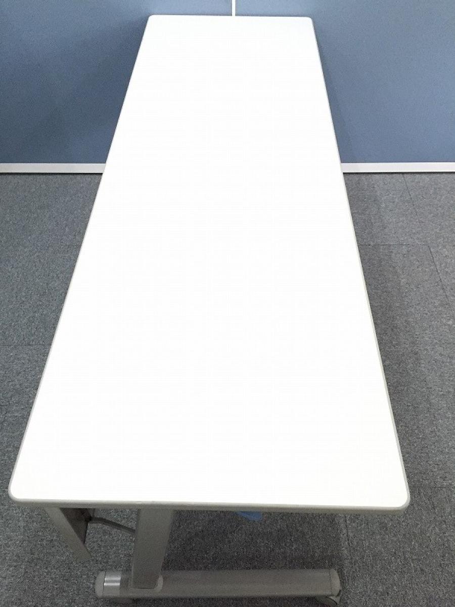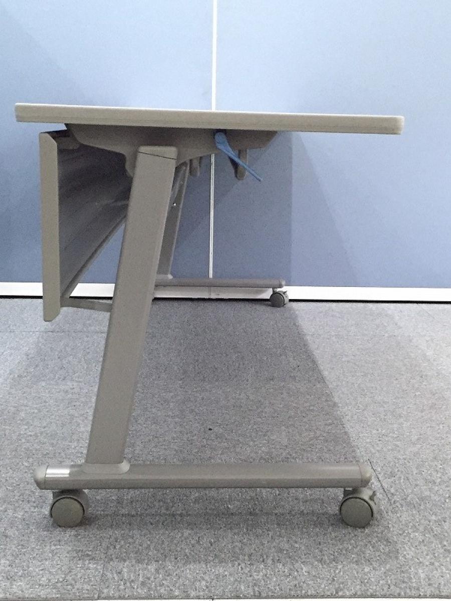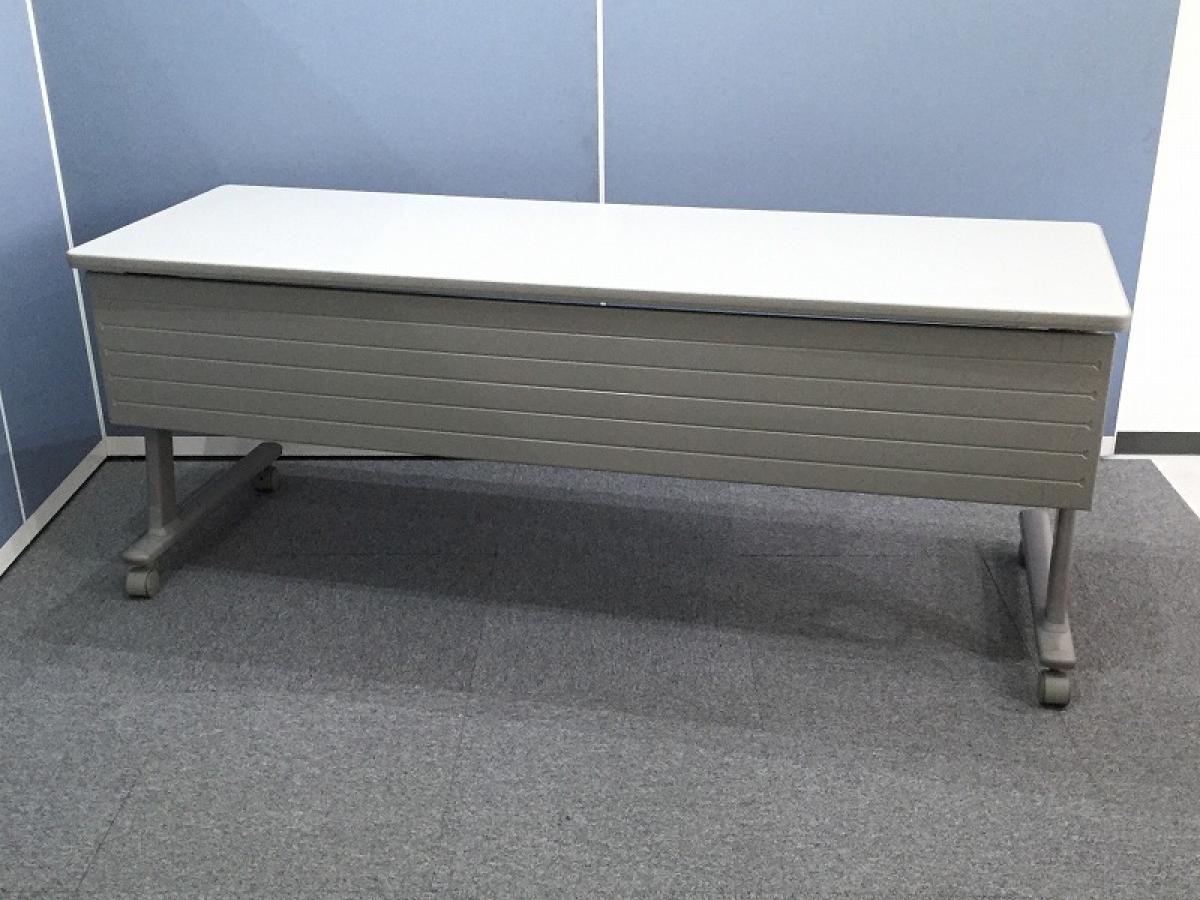 【スムーズに移動できるキャスター付!】■トヨスチール(TOYOSTEEL) ■サイドスタックテーブル ■W1800×D600×H700mm ■ホワイトグレー ■幕板パネル付- つくば店