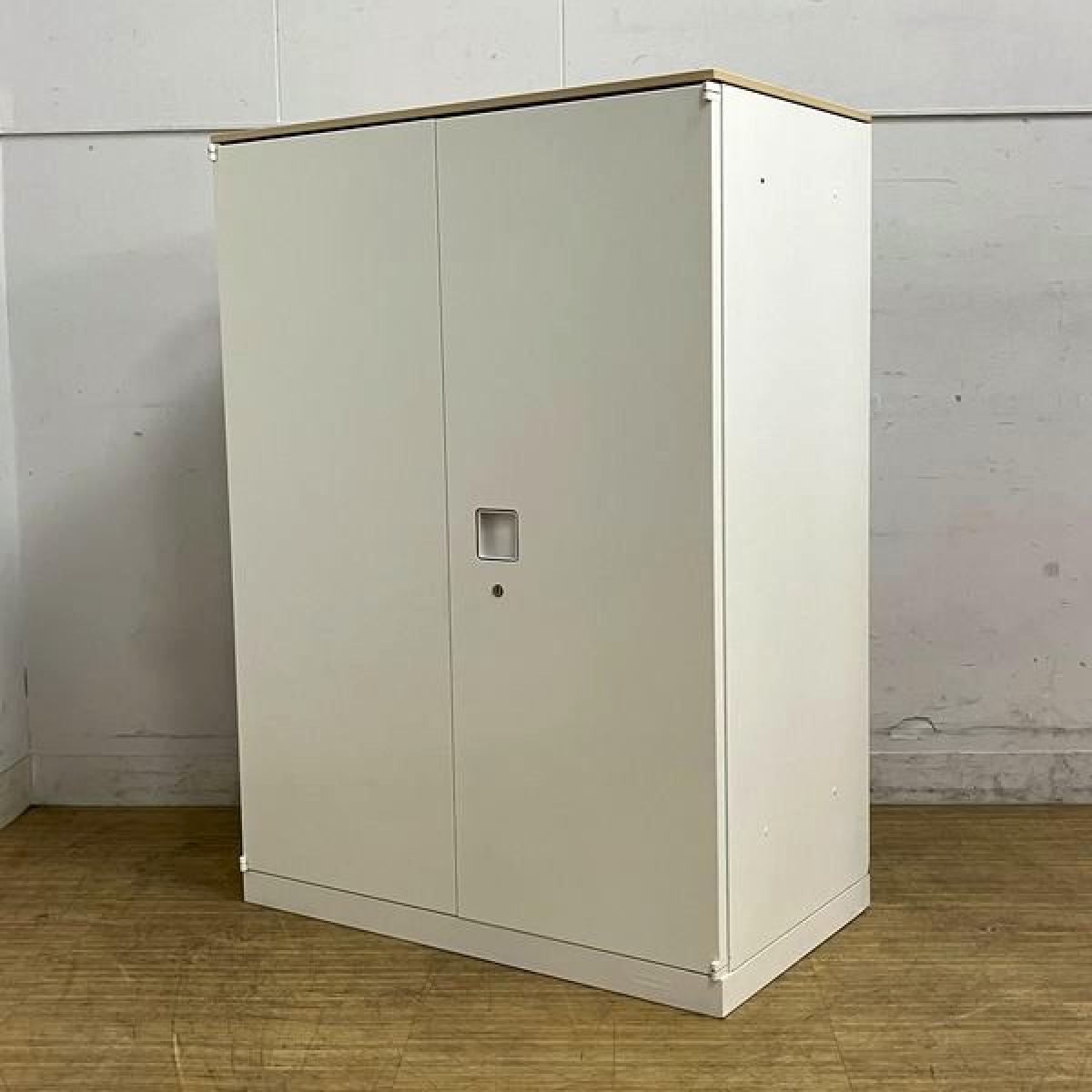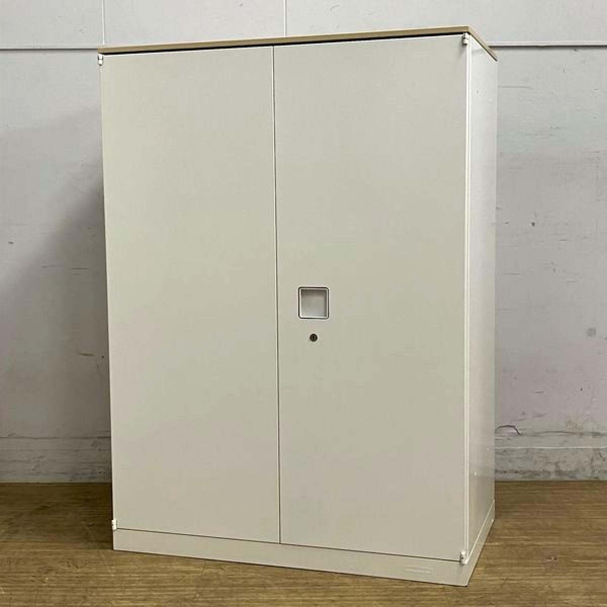 オカムラ レクトライン 両開き書庫 シリンダー錠 鍵付き 天板:ナチュラル×本体:ホワイト 珍しいW800サイズ【愛知・名古屋・豊田・静岡・浜松】- 名古屋千種店