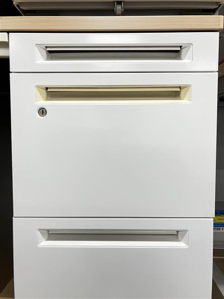 【在庫入れ替え】【人気のコンパクトサイズ!スタイリッシュな木目天板!】 ■オカムラ(okamura)製 アドバンスシリーズ 片袖デスク W1000mm ■木目ナチュラル天板 × ネオホワイトボディー ■シリンダー鍵
