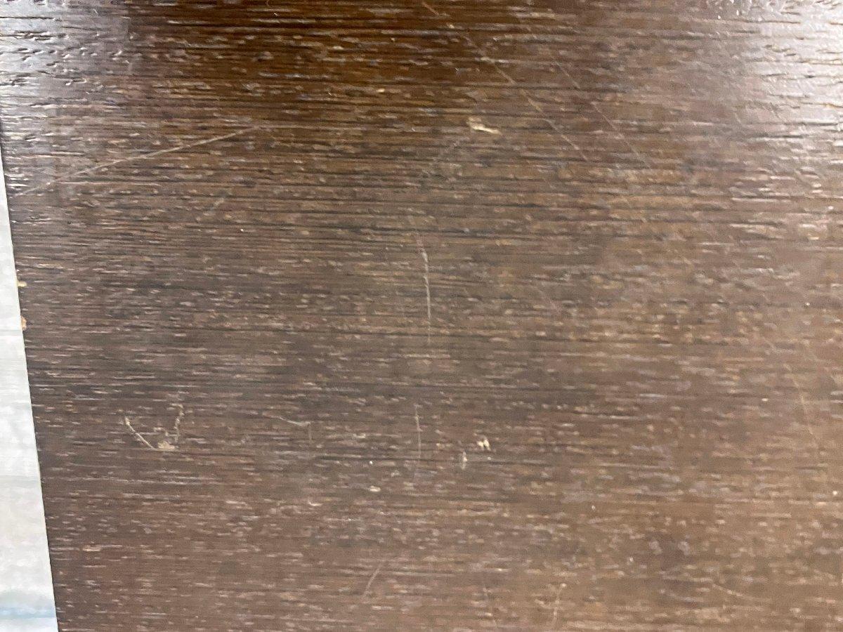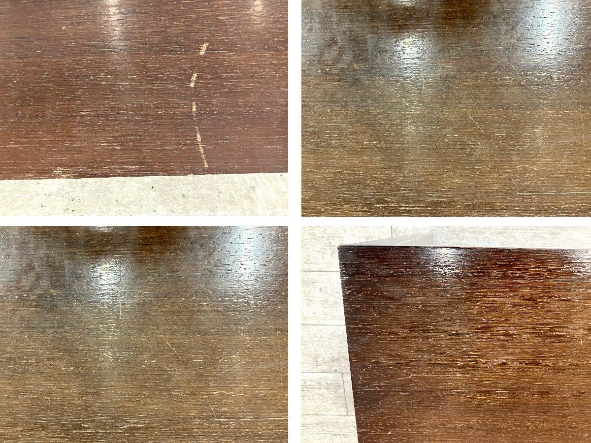 - 目立つ箇所あり傷・凹みが多数、深い傷・凹みが一部ある。(例、天板、幕板、棚板、サイド部分、脚部等にある。)
