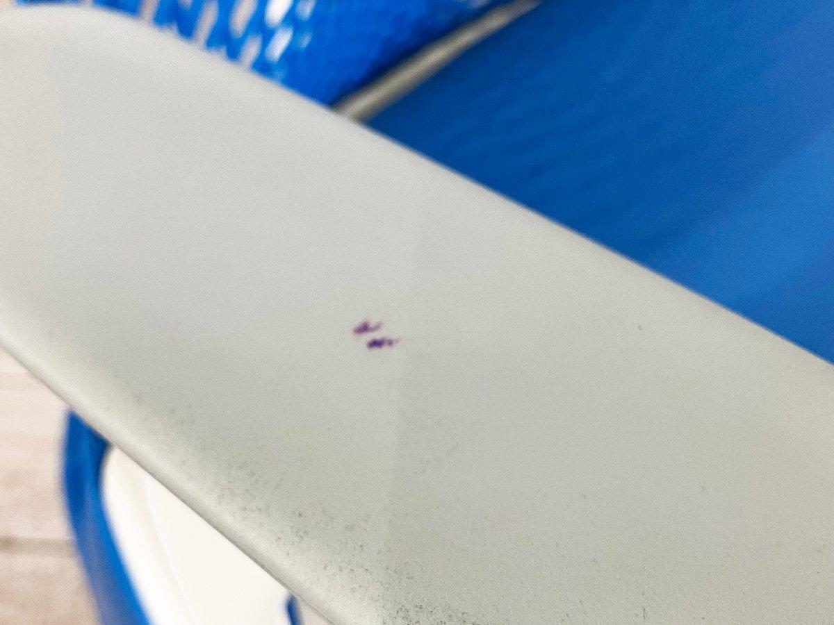 - 目立つ箇所あり傷・破れ・ほつれ・へたり・しわが多数または深い傷・破れ・ほつれ・へたり・しわが一部ある。※座面・背もたれ、シェル、脚部等にある。