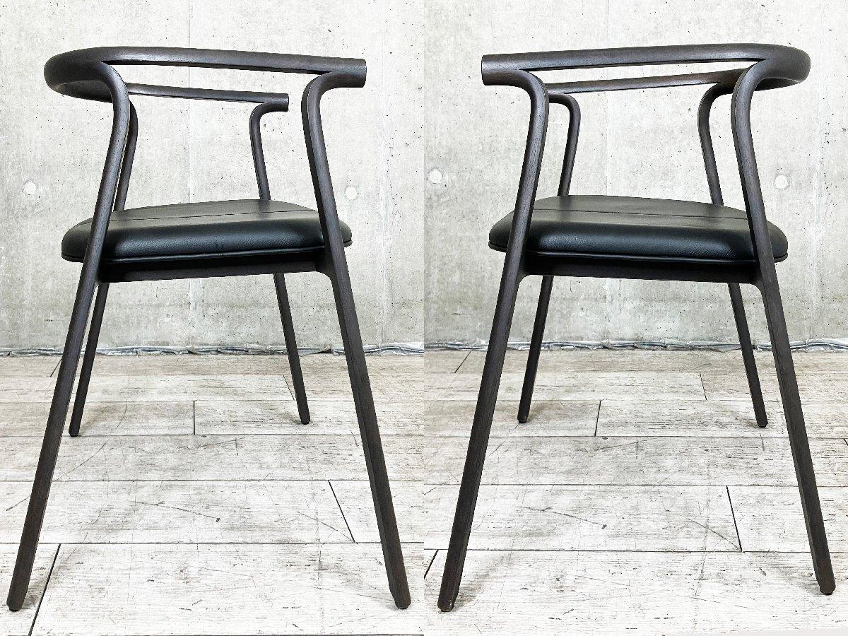 nendoの佐藤オオキ氏による流れるようなフォルムが特長のアームチェアです。 背からめくれるように裂けて、脚やアームになるデザインは、ほとんどが「半円柱」の部材となって全体に軽やかな印象を与えます。