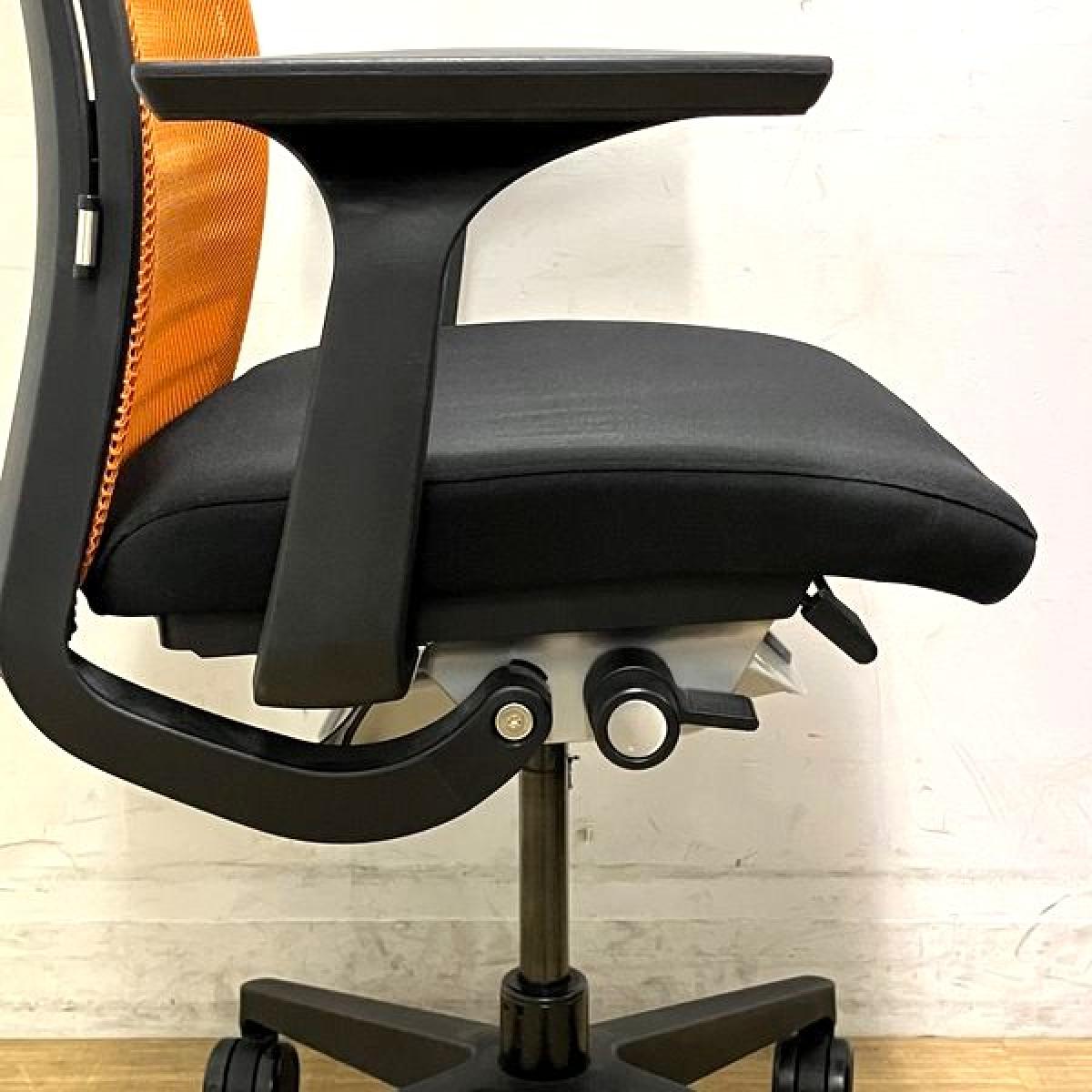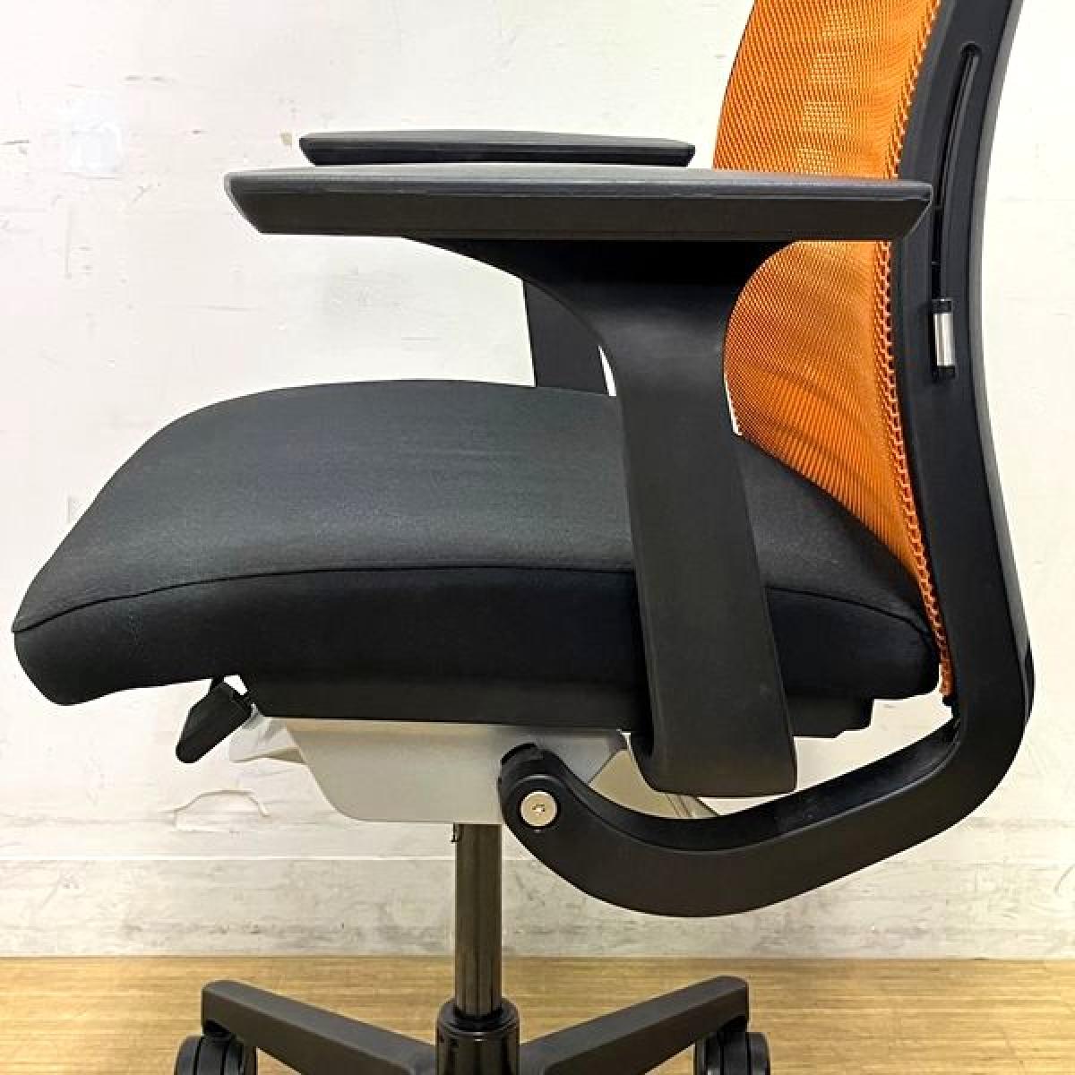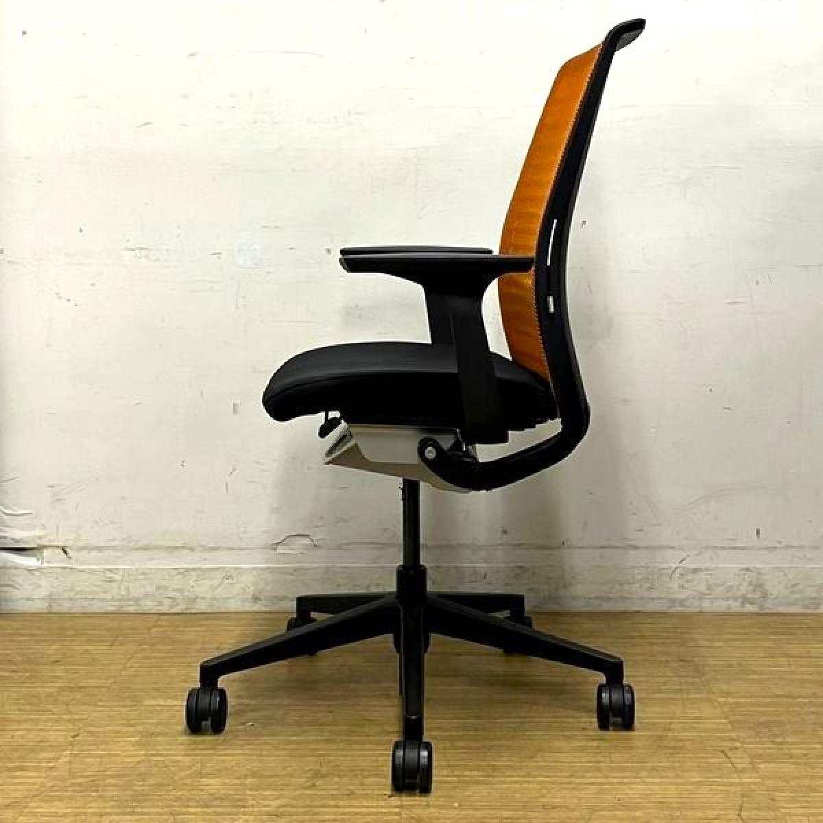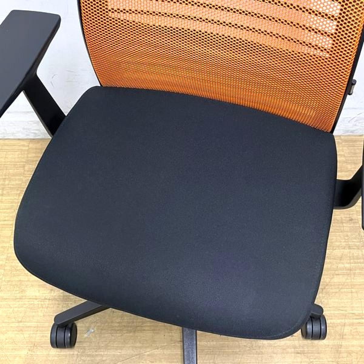 スチールケース(Steelcase)シンクチェア 固定肘 背:オレンジ×座:ブラック 背メッシュ ランバーサポート 事務用にも会議室用にもおすすめ- 名古屋千種店