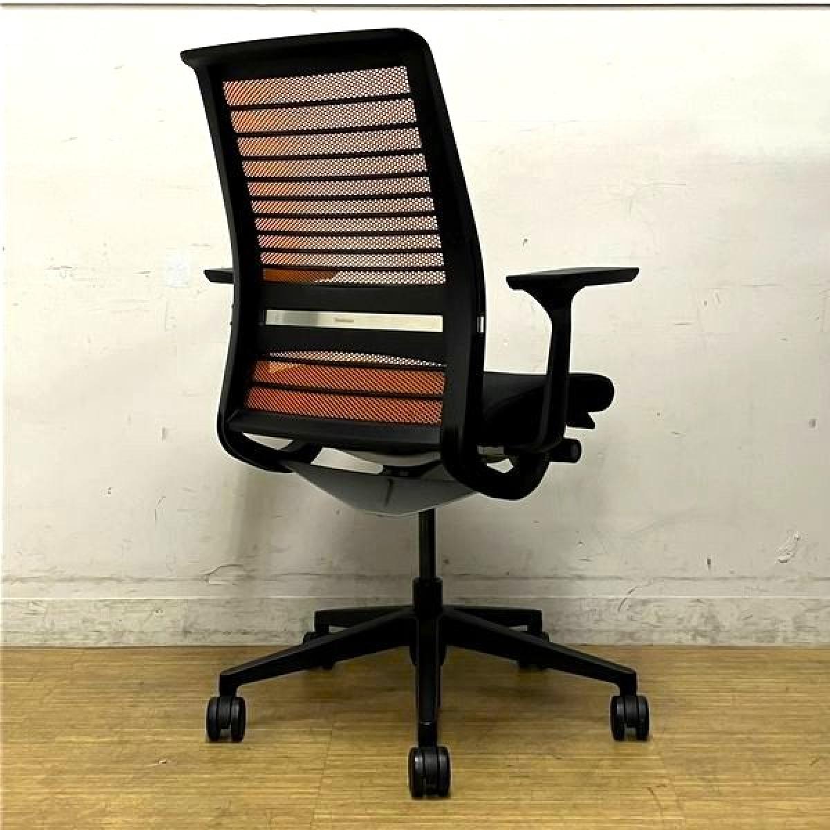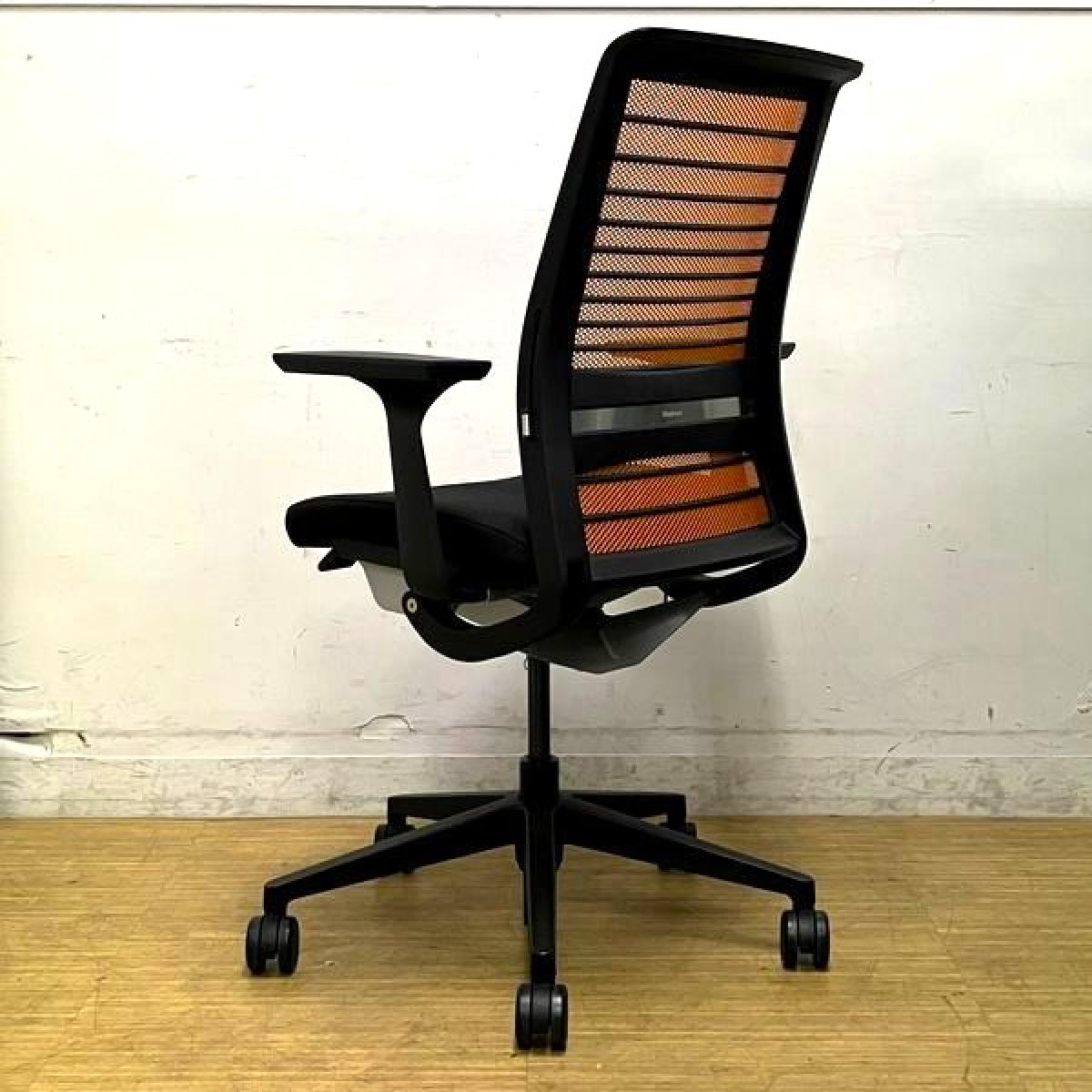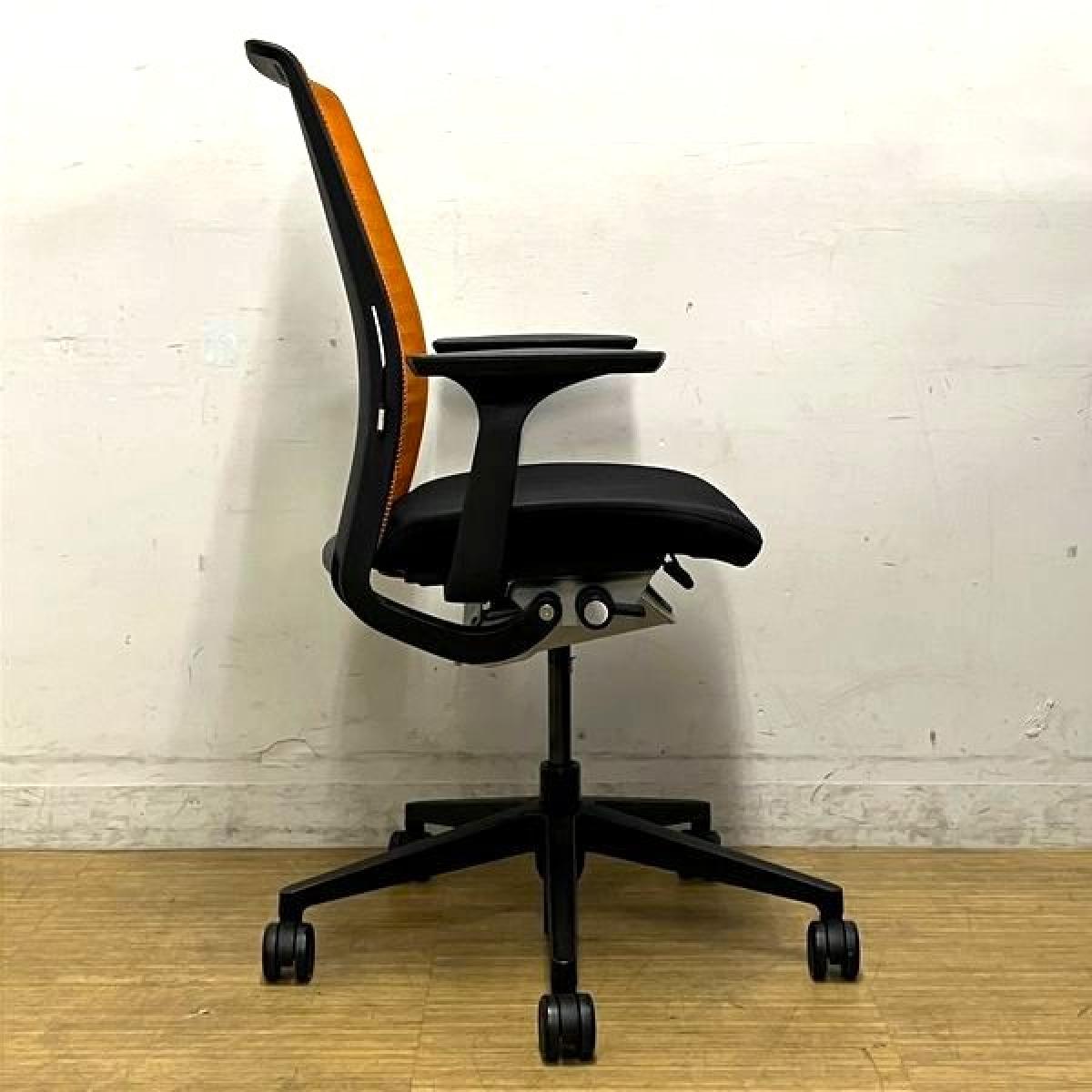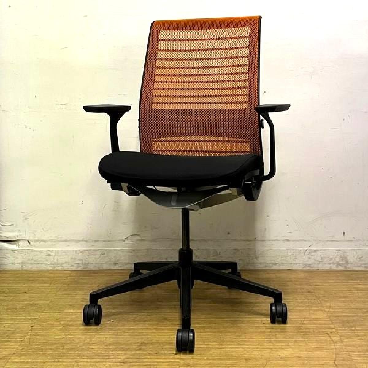 スチールケース(Steelcase)シンクチェア 固定肘 背:オレンジ×座:ブラック 背メッシュ ランバーサポート 事務用にも会議室用にもおすすめ- 名古屋千種店