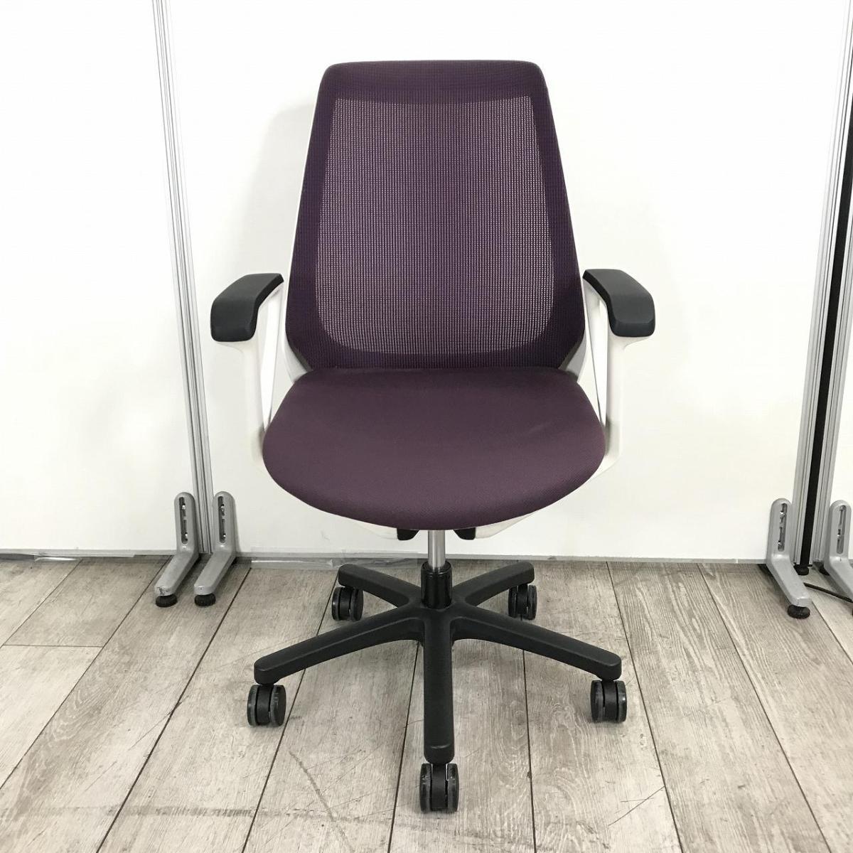 【在庫入替セール!】■イトーキ(ITOKI)製 ノナ(nona)チェア ハイバック 肘付き ■サークル肘 ■背面メッシュ ■プラムパープル × ブラックシェル【T12】