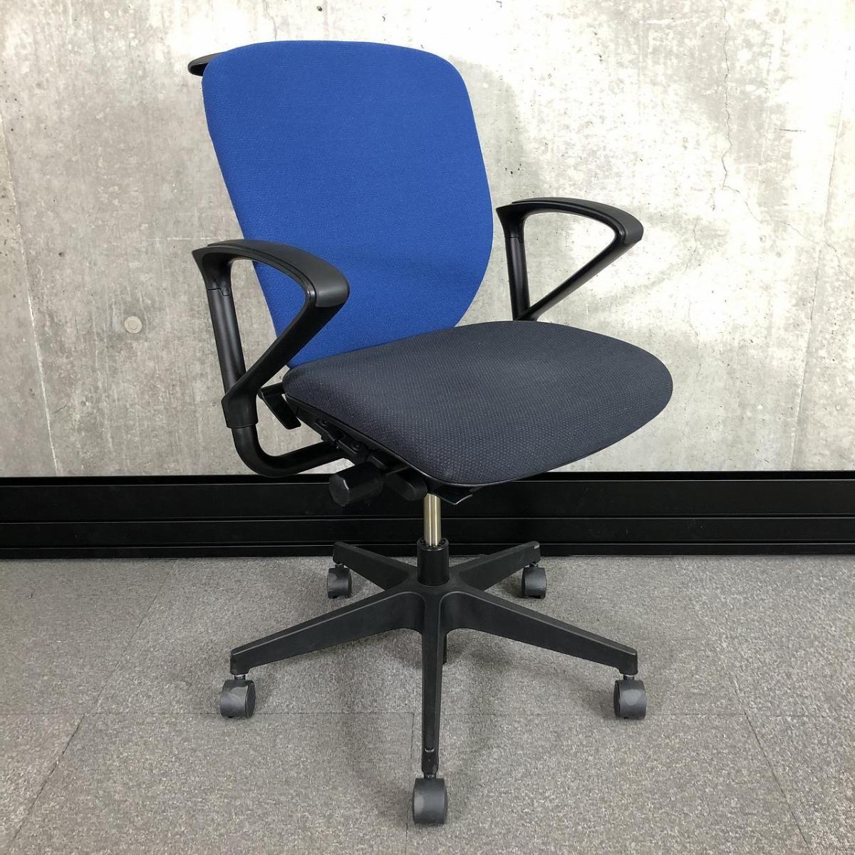 【一人ひとりにマッチする座り心地!姿勢の変化にフレキシブルに対応!】■イトーキ(ITOKI)製 プラオチェア 肘付 ローバック ■サークル肘 ■背面ストロングブルー×座面ブラック オフィスバスターズ 東大阪店【K11】